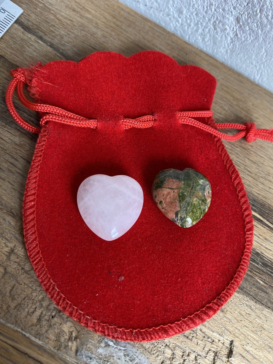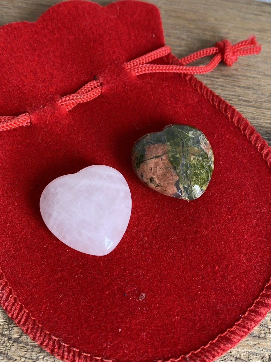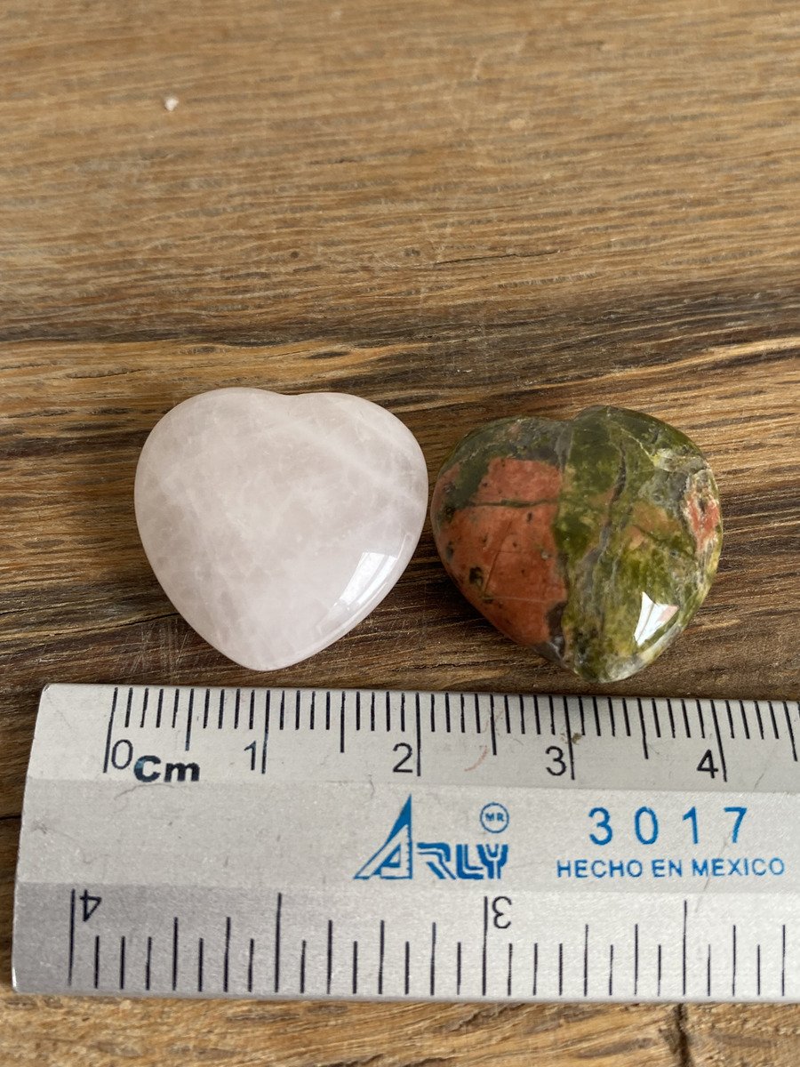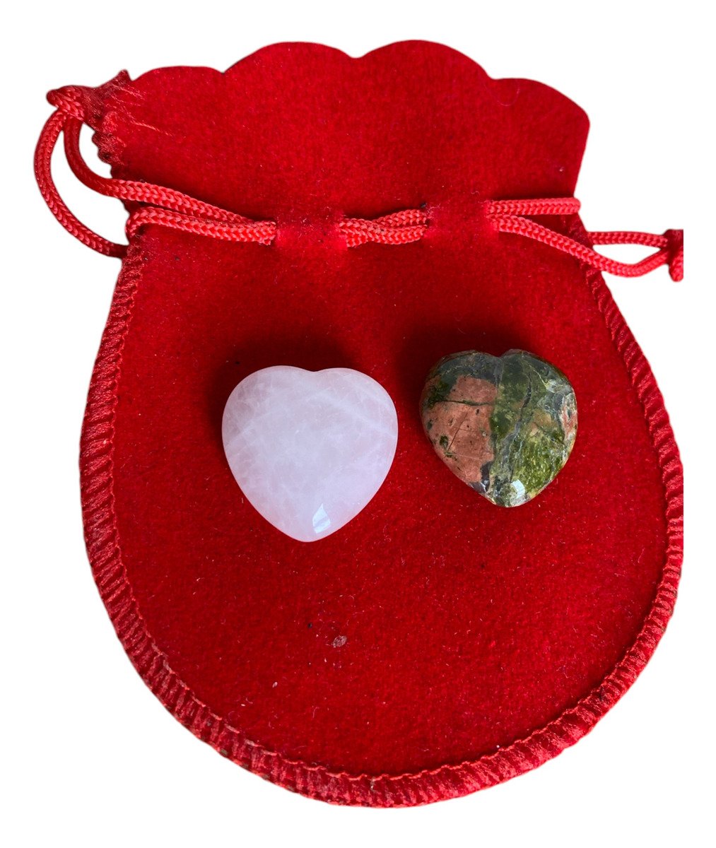 Kit Corazon Cuarzo Rosa Y Unakita Piedra Natural Atrae Amor