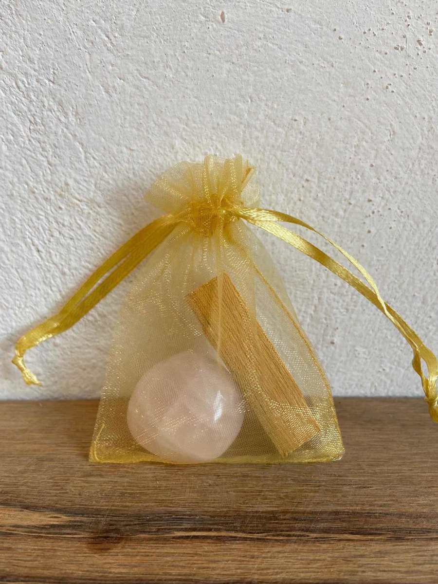 Kit Cuarzo Rosa Y Palo Santo Con Bolsita De Regalo