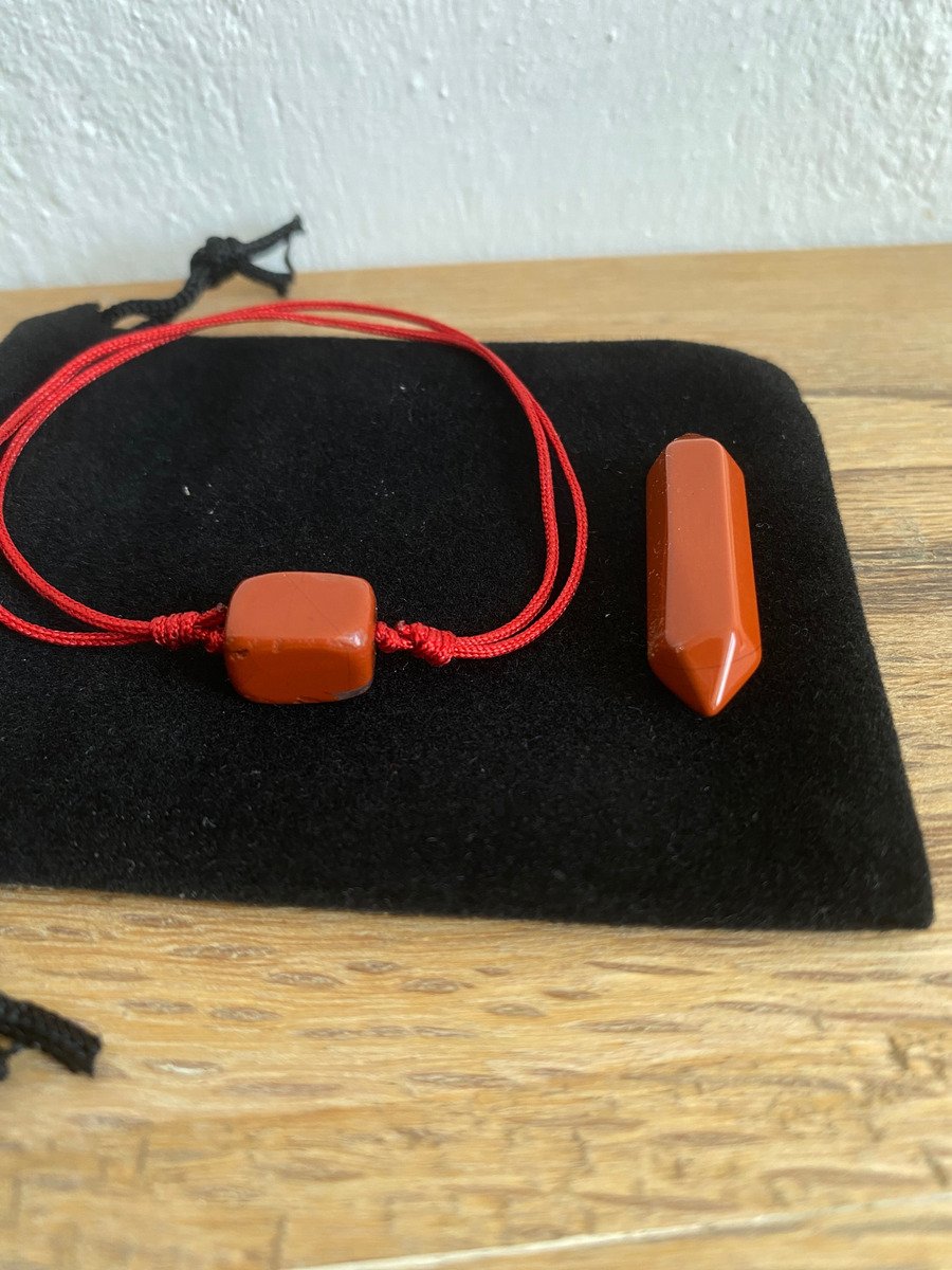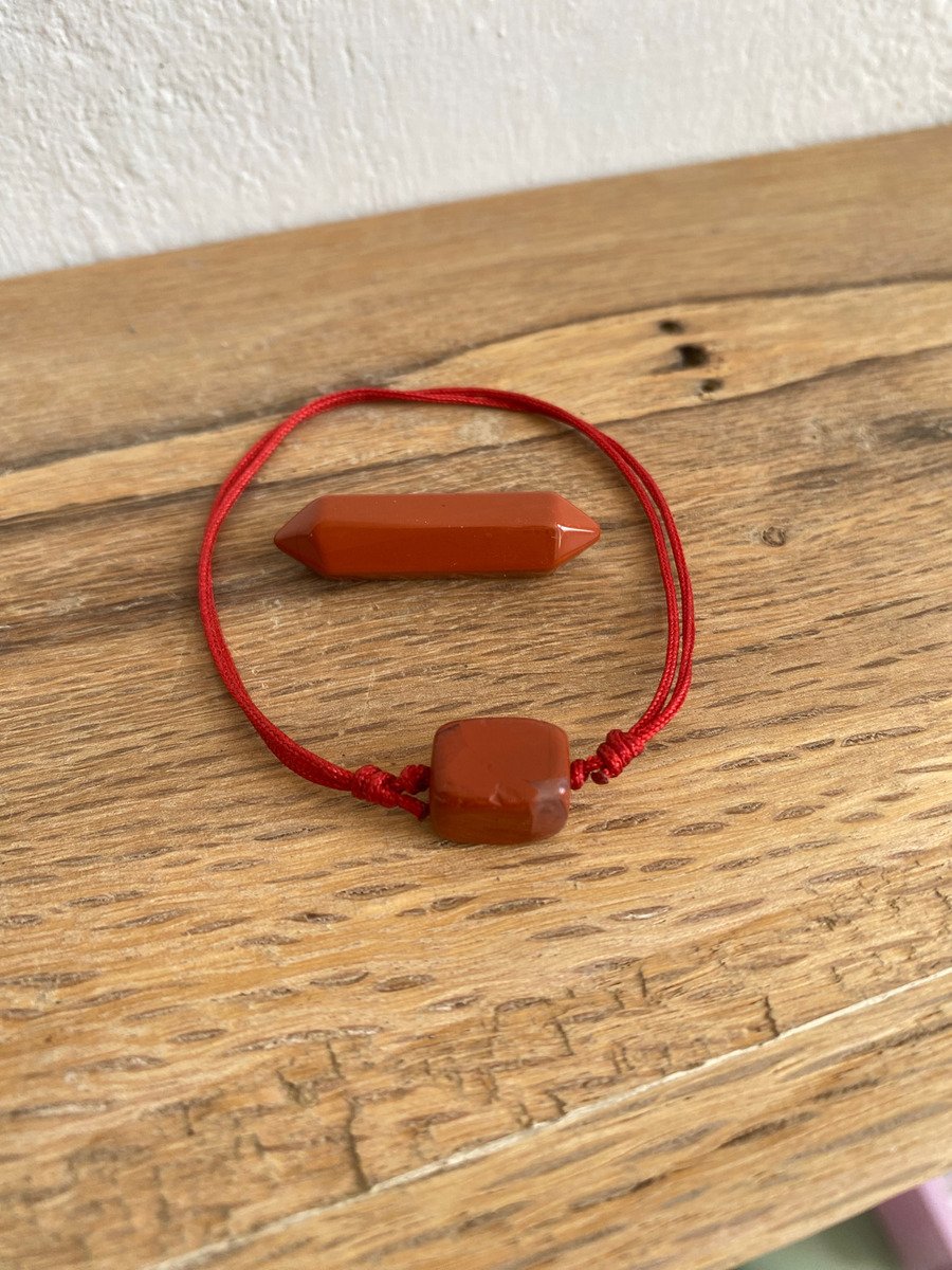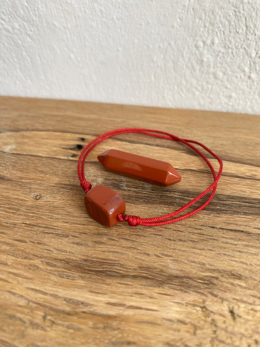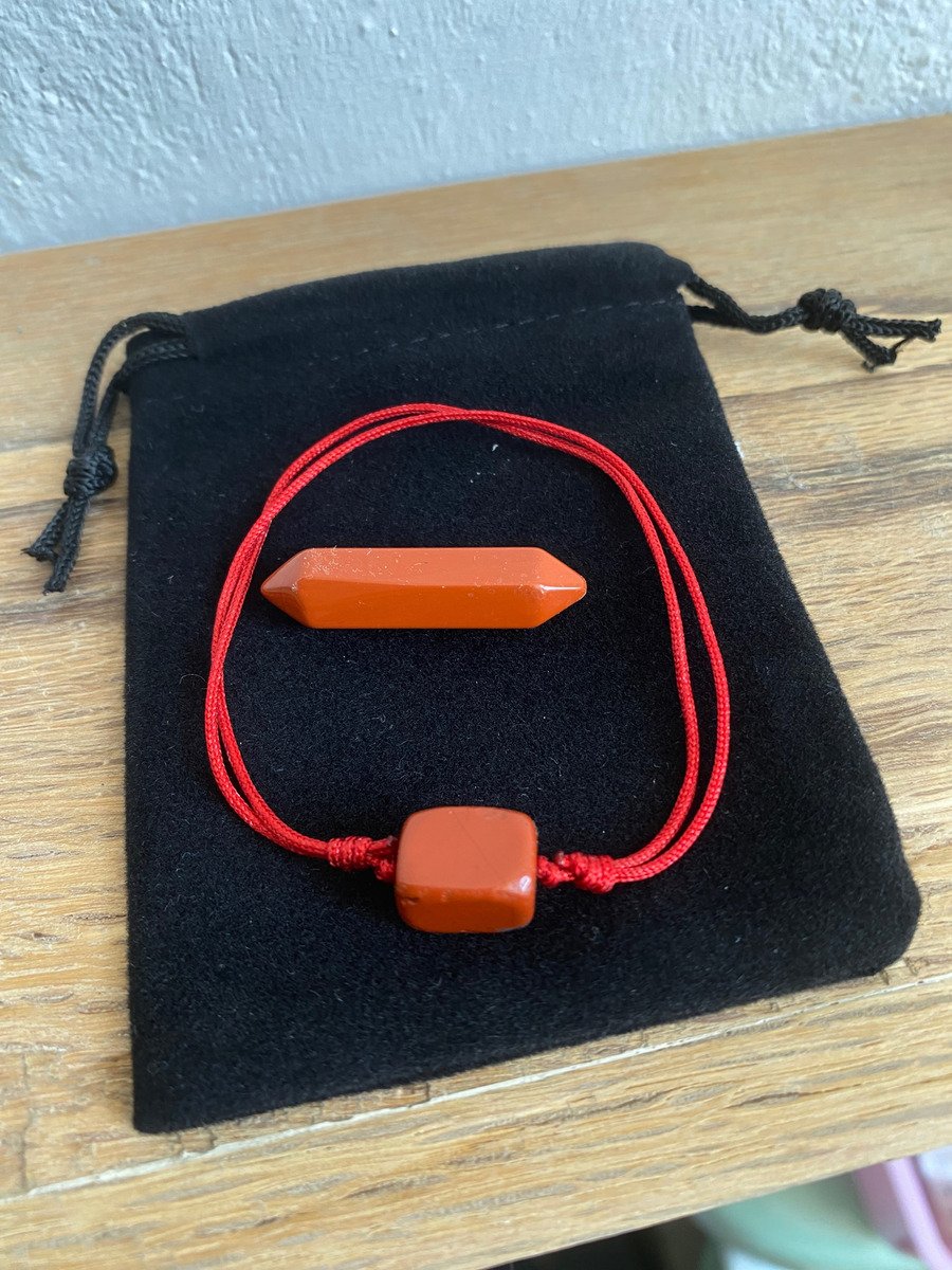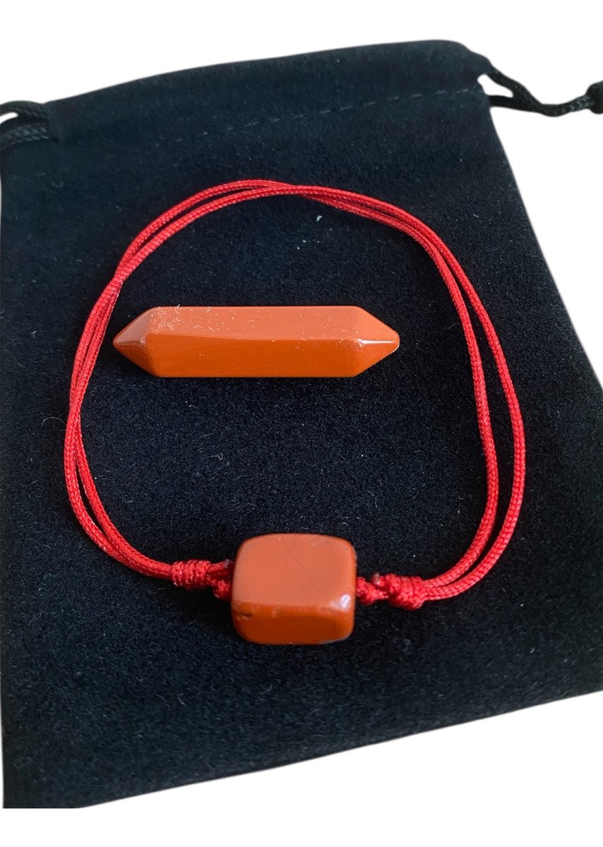 Kit Pulsera Jaspe Rojo Nuget Y Doble Punta Piedra Natural