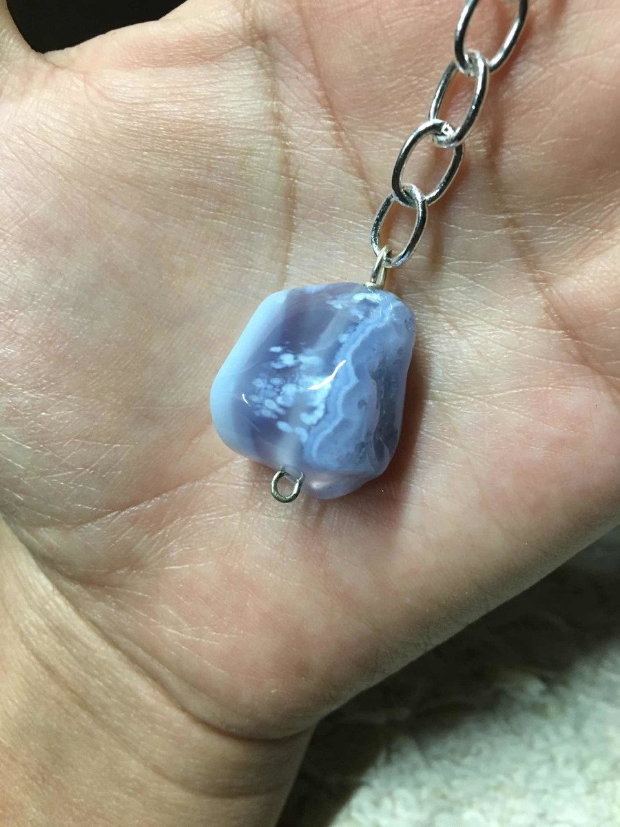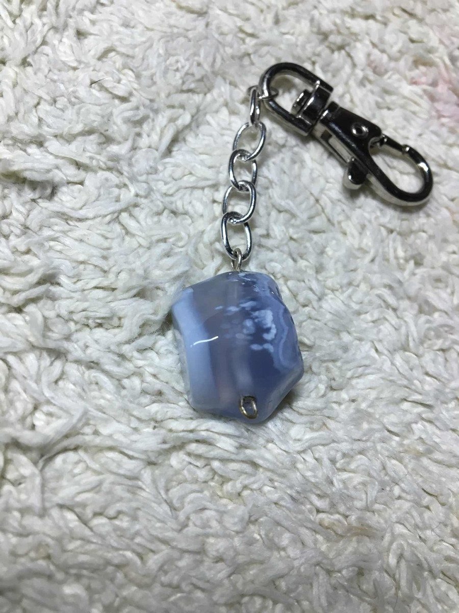 Llavero Ágata Azul Blue Lace Piedra Natural Amuleto