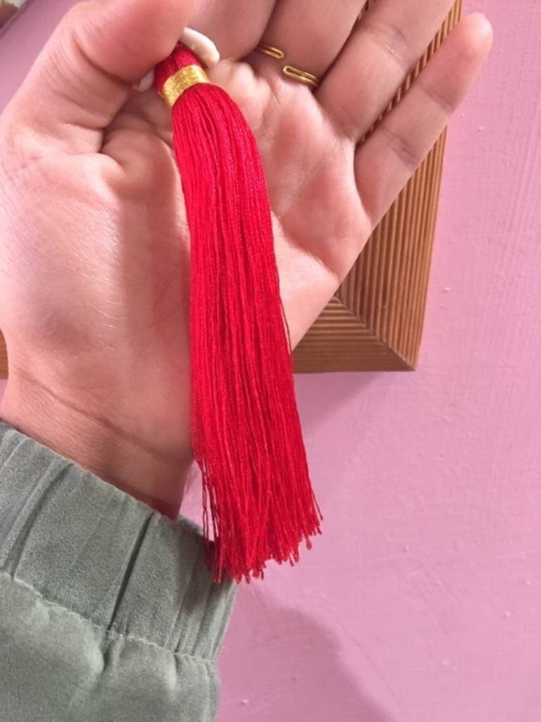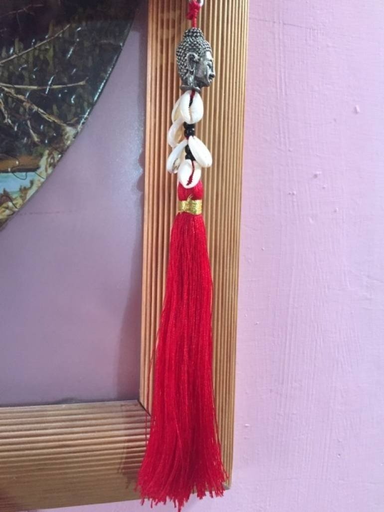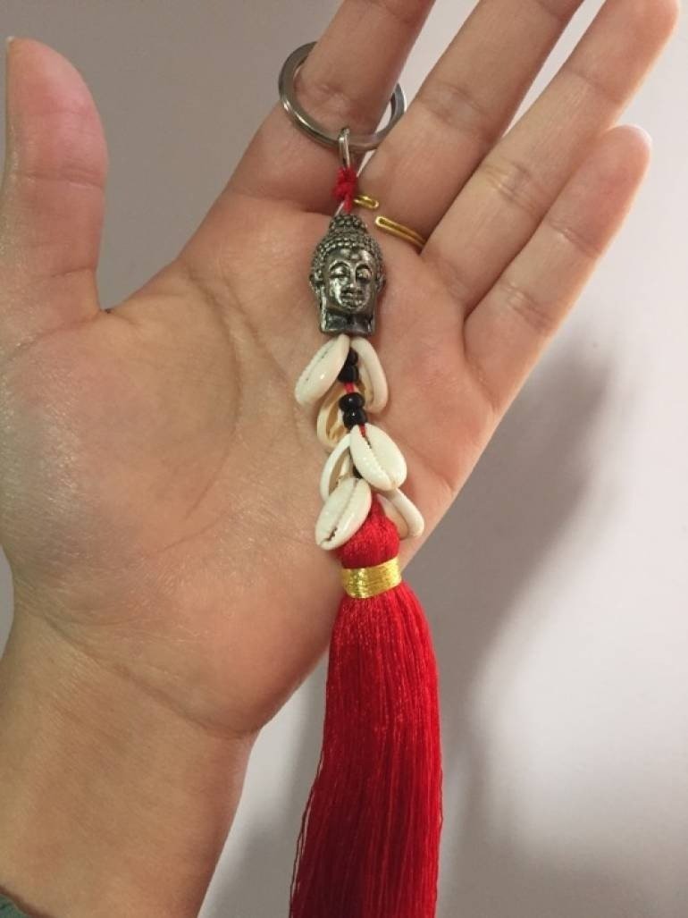 Llavero Diosa Hindu Con Borla Roja Y Caurie