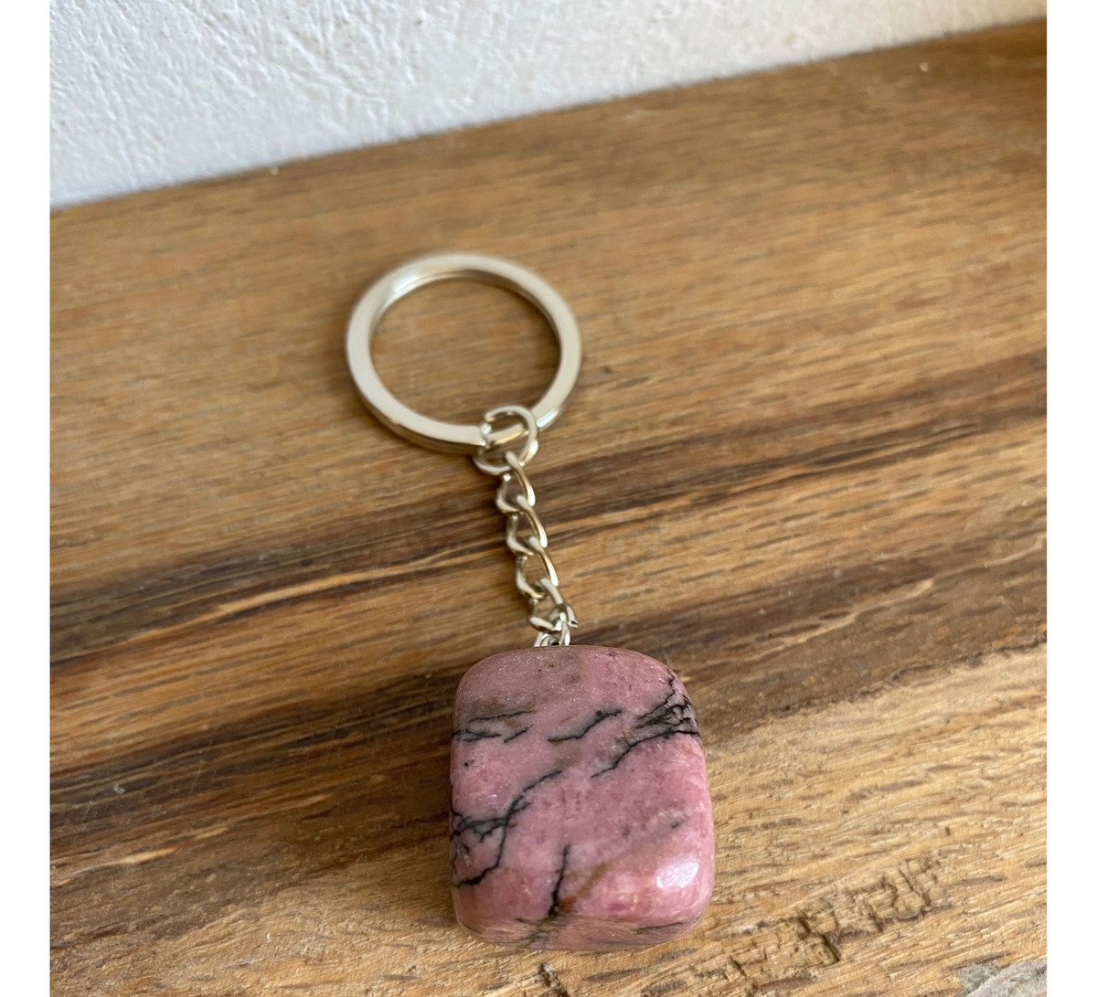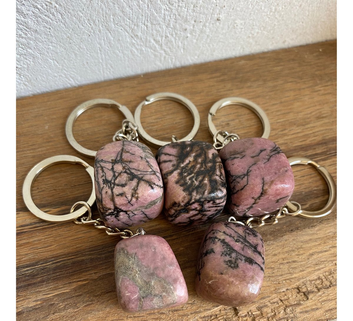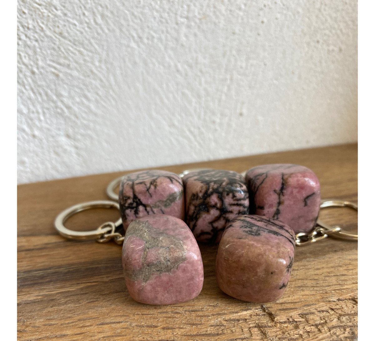 Llavero Piedra Rodonita Natural Reiki Yoga Chakra Corazon