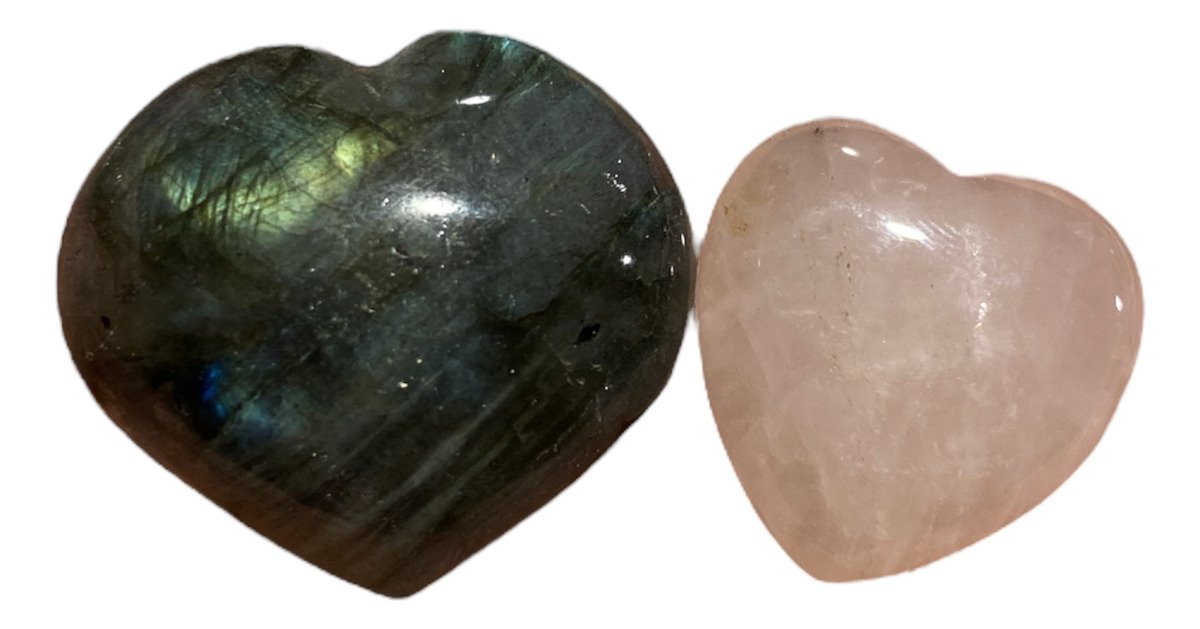 Mini Kit De Corazones Cuarzo Rosa Y Labradorita Amuleto Amor
