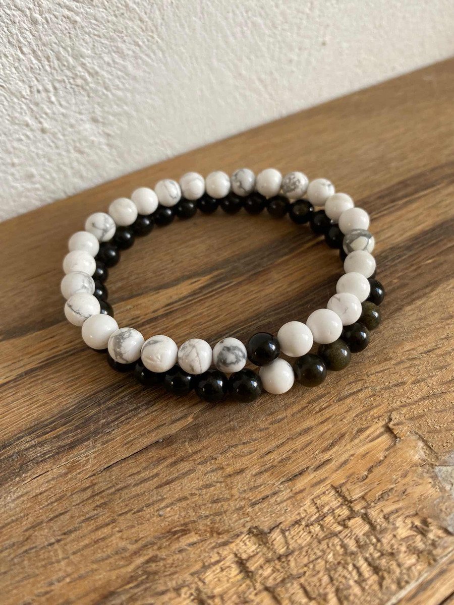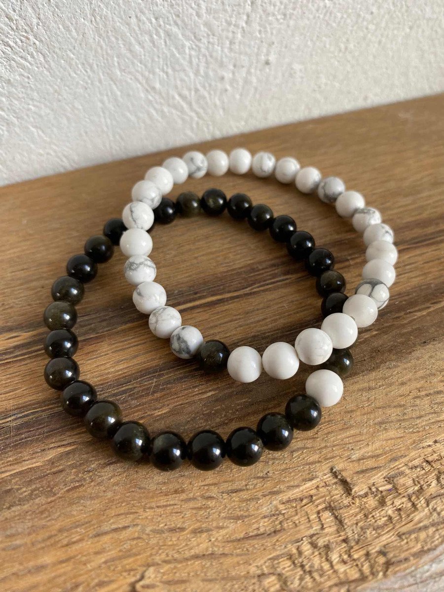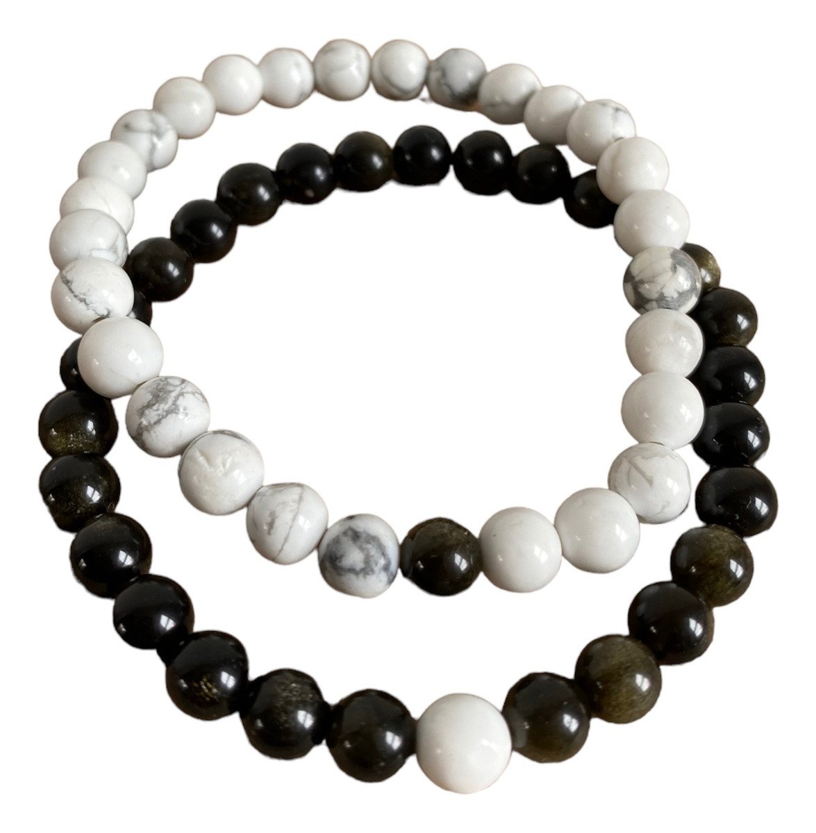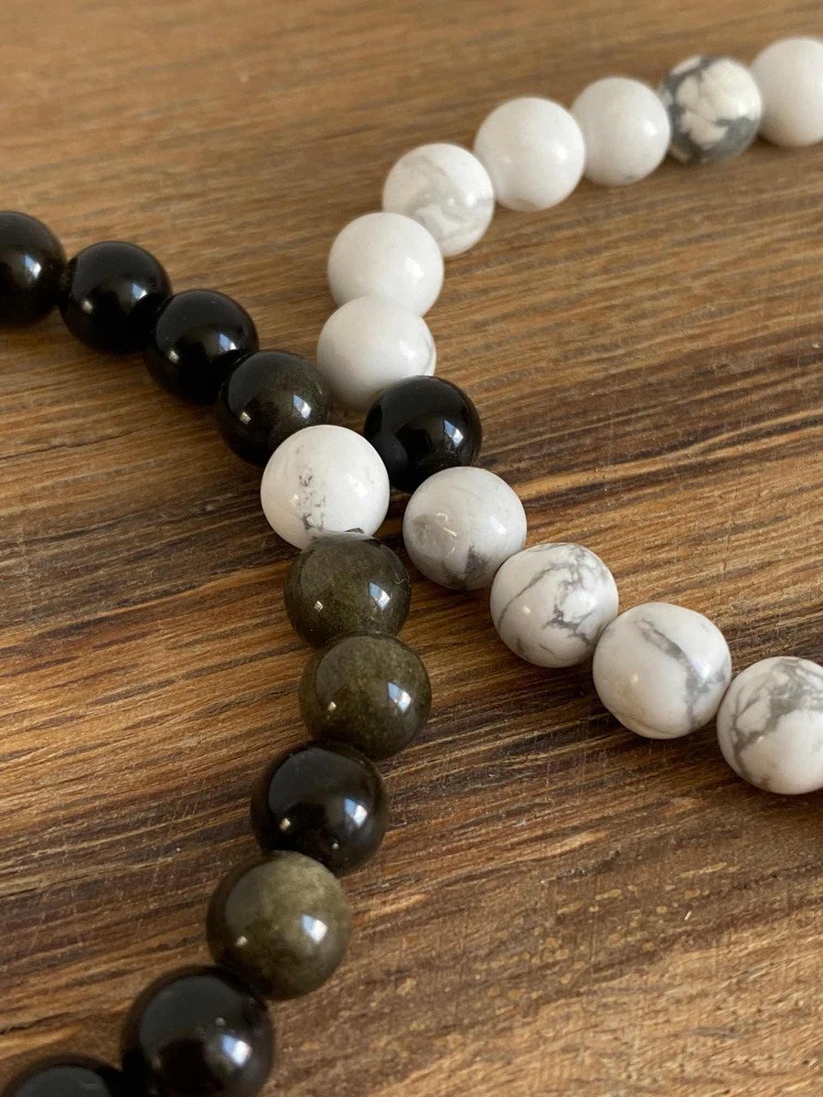Hechas con obsidiana dorada y howlita.