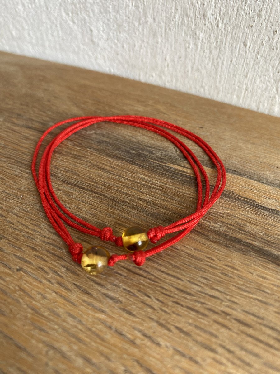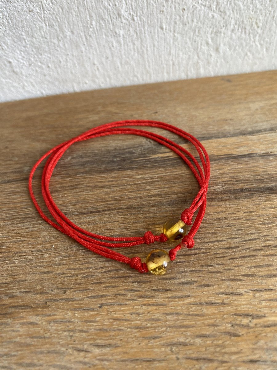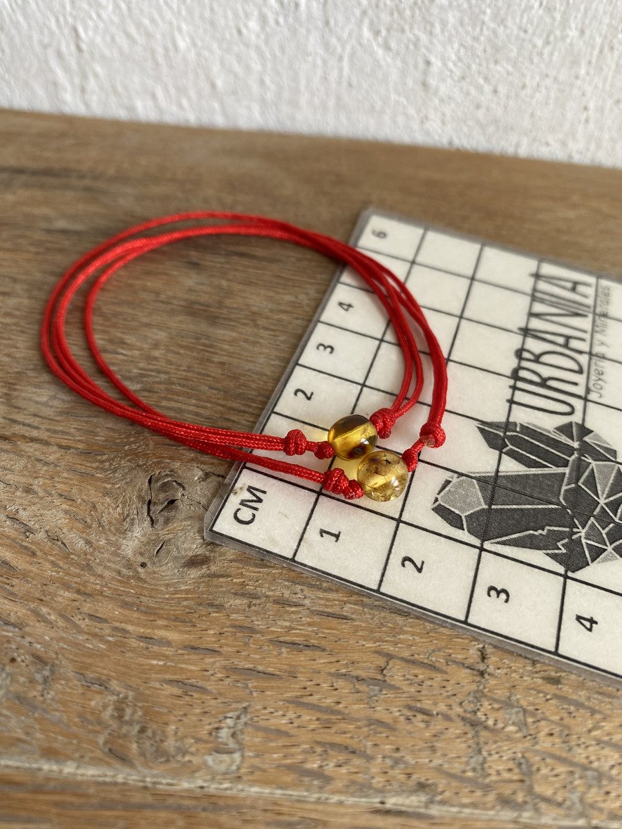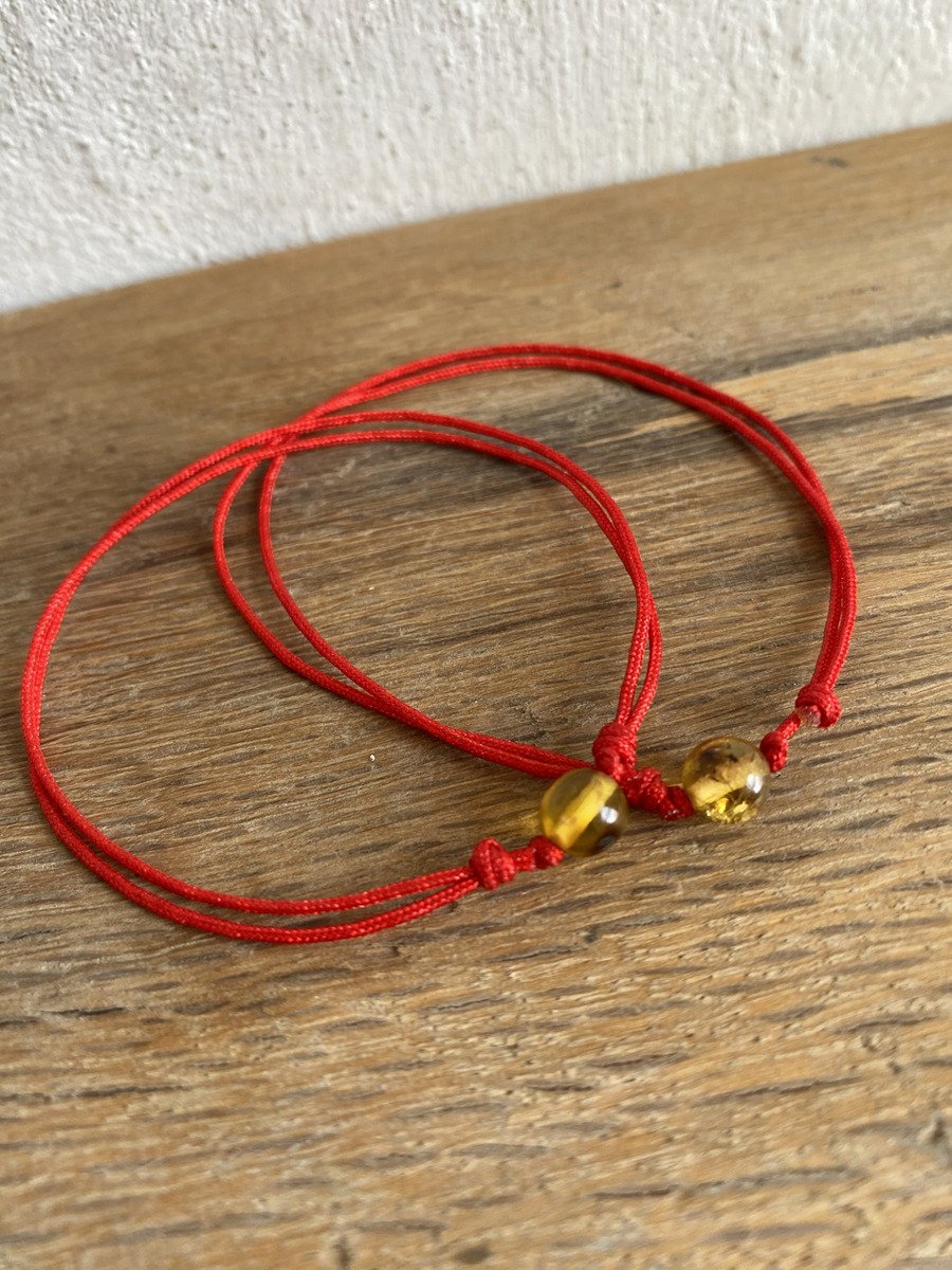 Par Pulseras Pareja Hilo Rojo Y Ámbar Minimalista Ujm
