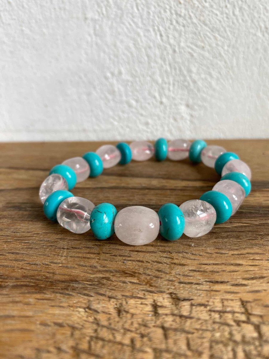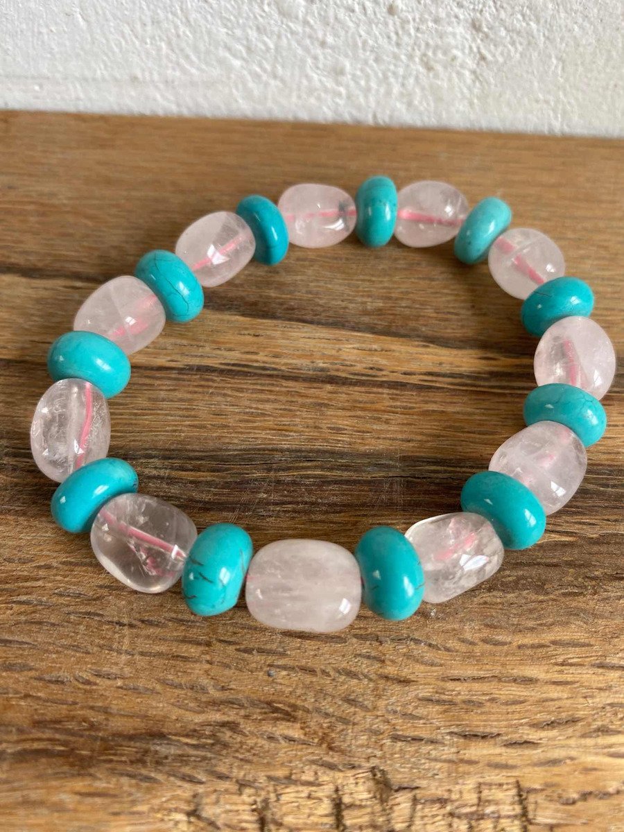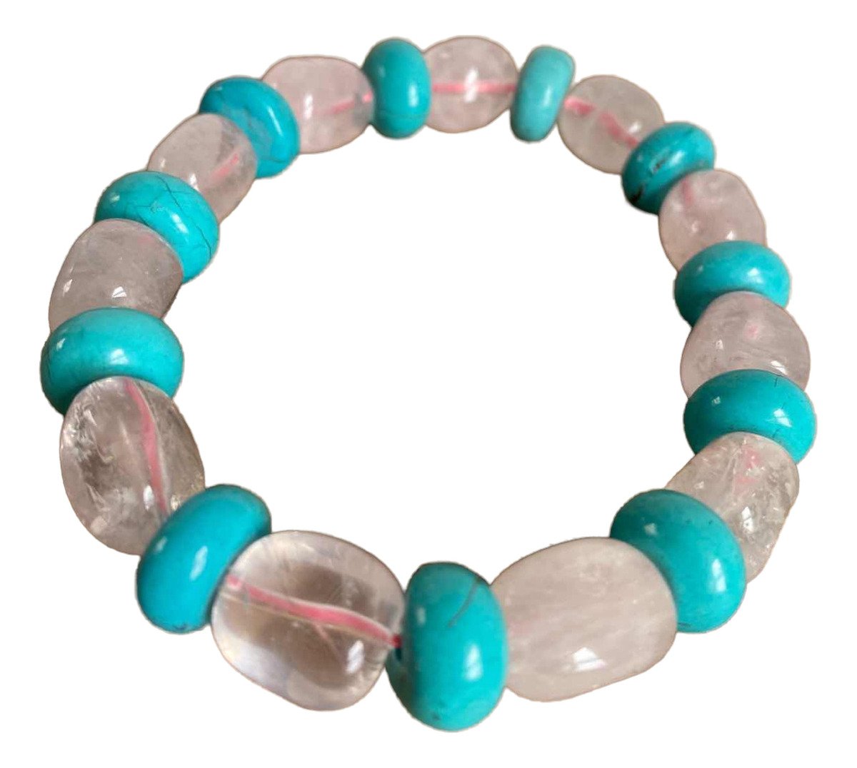 Pulsera Cuarzo Rosa Y Howlita Azul Piedra Atrae Amor