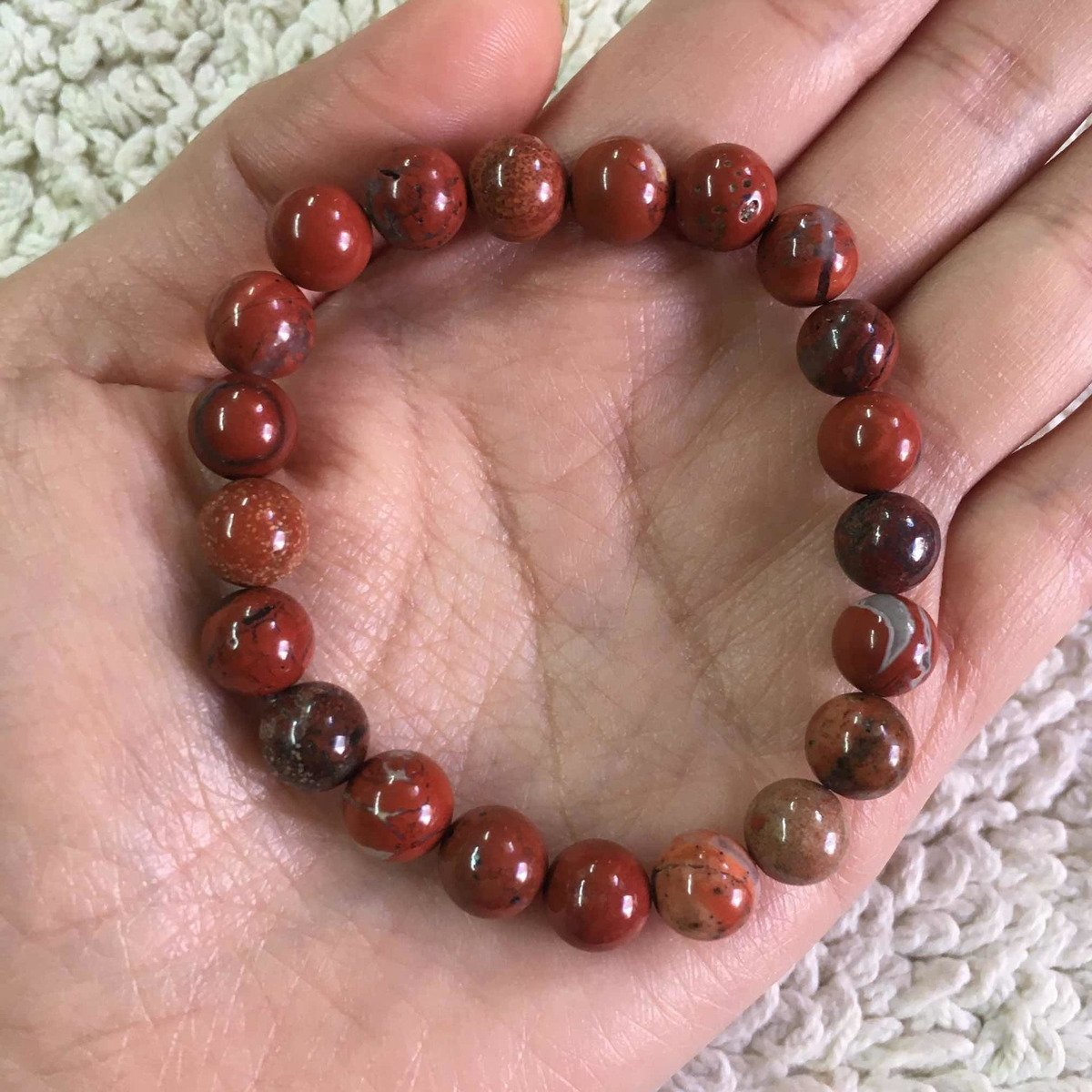 Pulsera De Jaspe Rojo Piedra Natural 8 Mm Contra Mal De Ojo