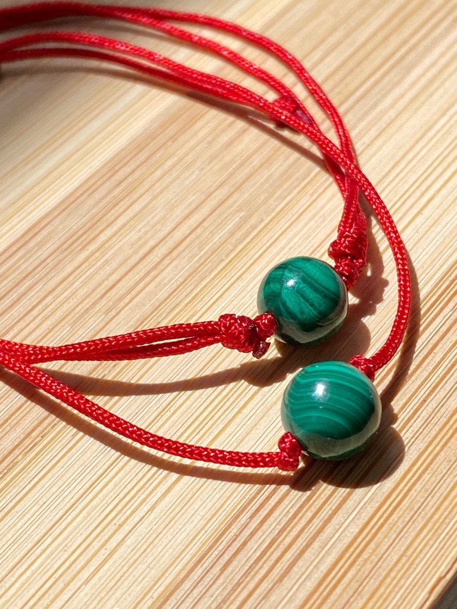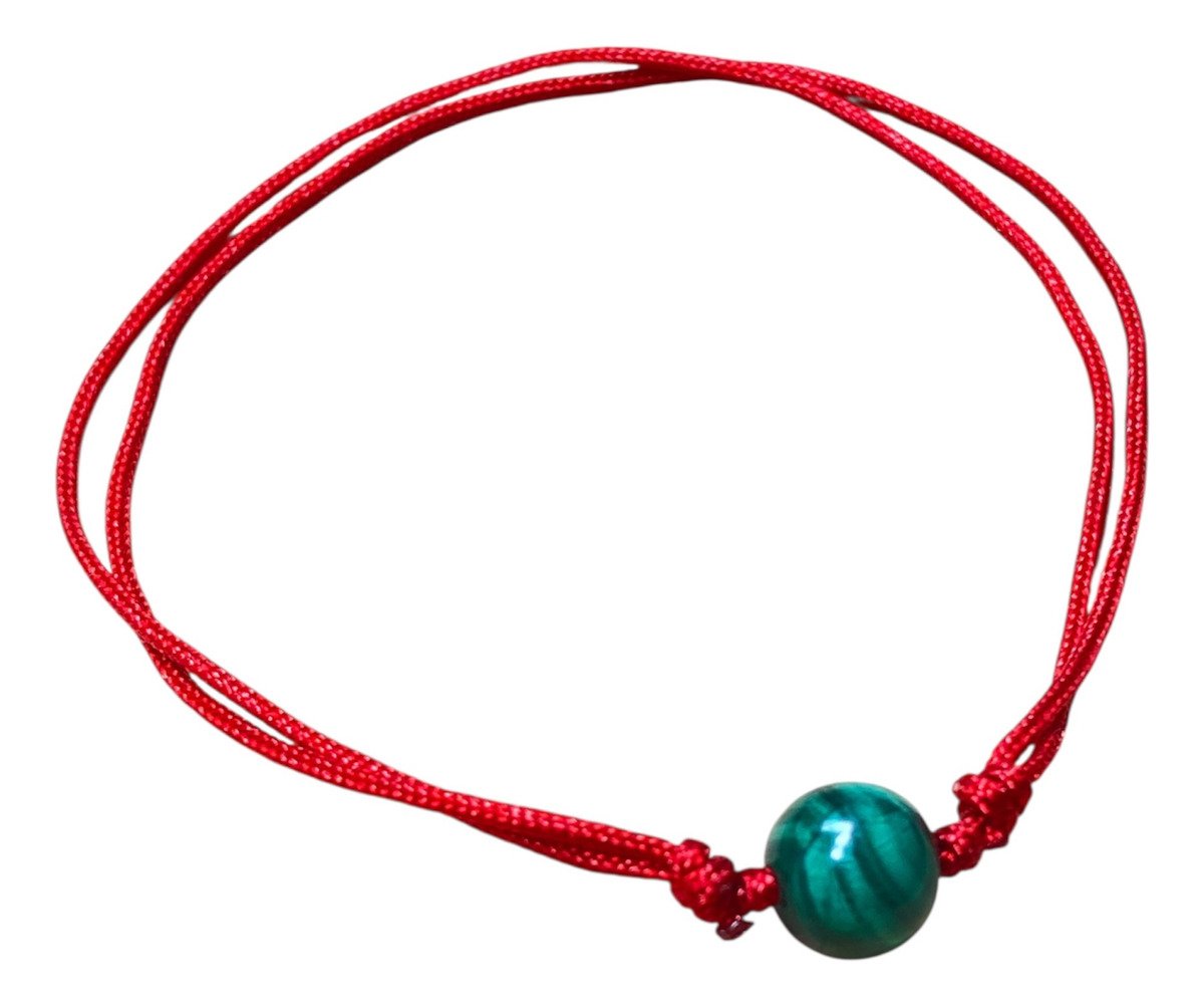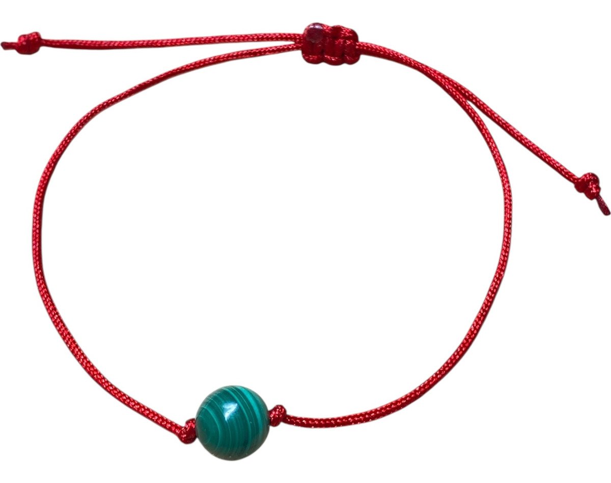 Pulsera De Malaquita Esfera De 8mm Hilo Rojo