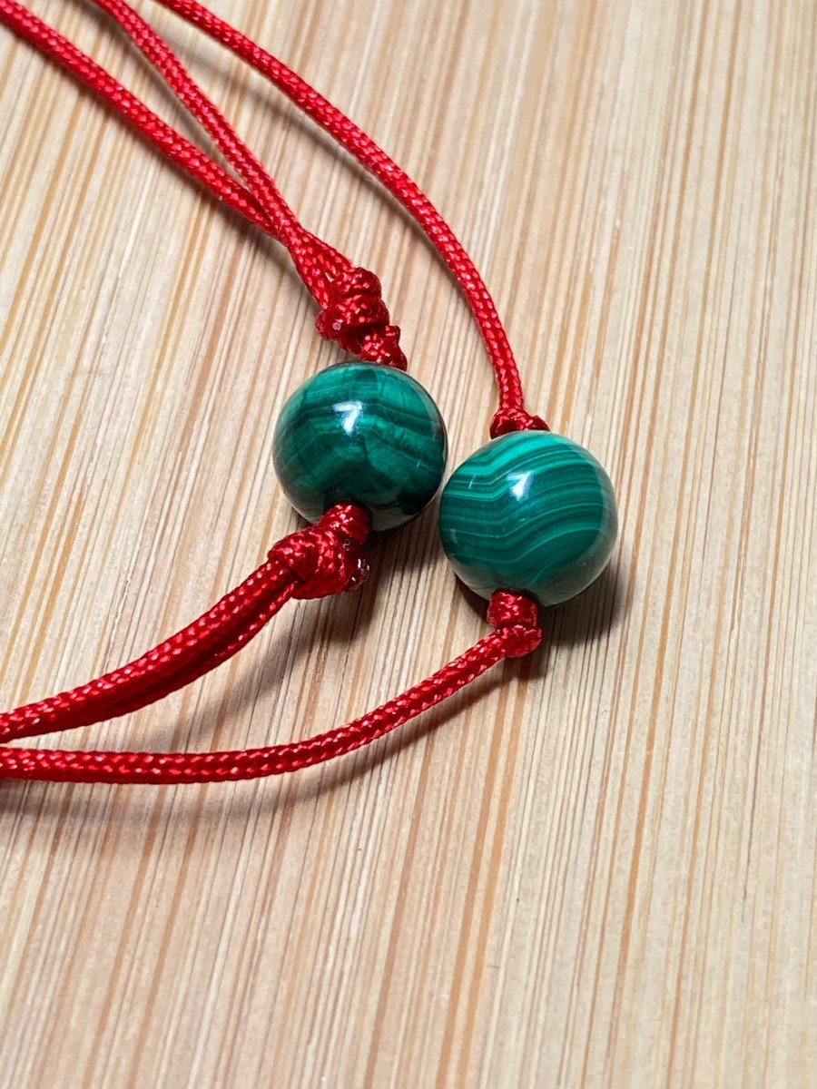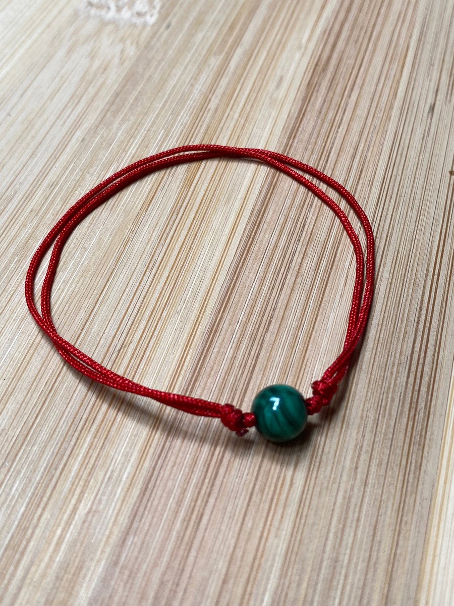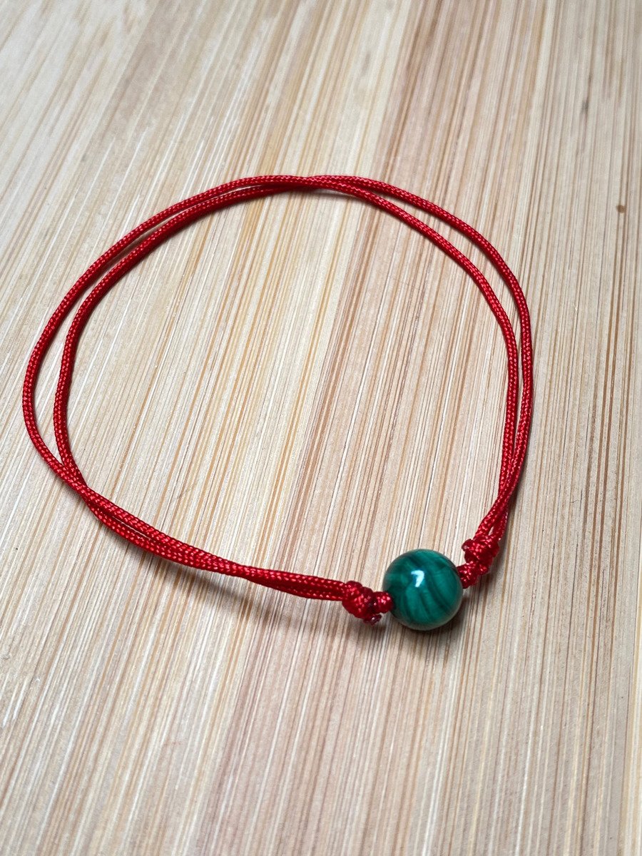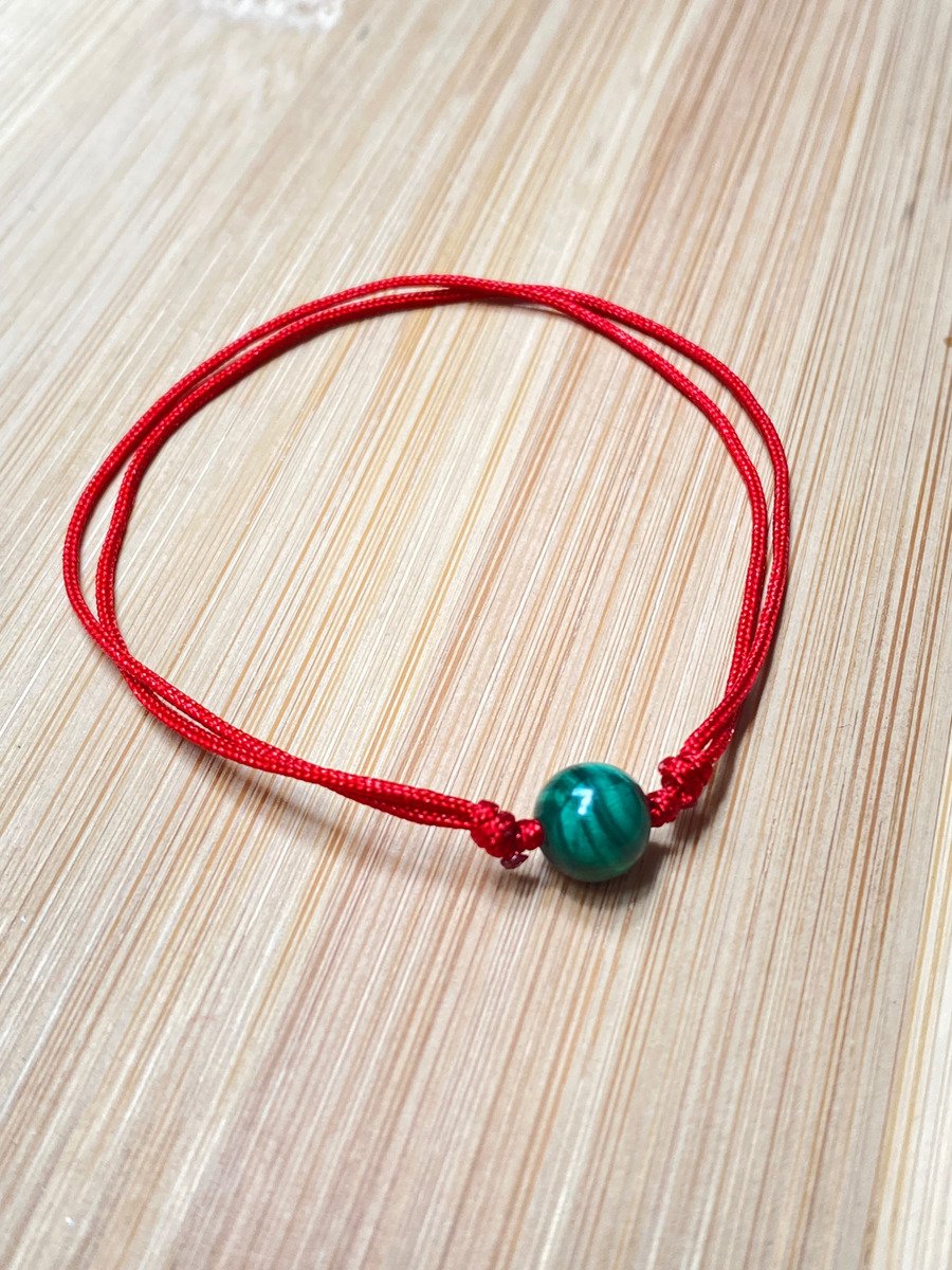 Pulsera De Malaquita Esfera De 8mm Hilo Rojo