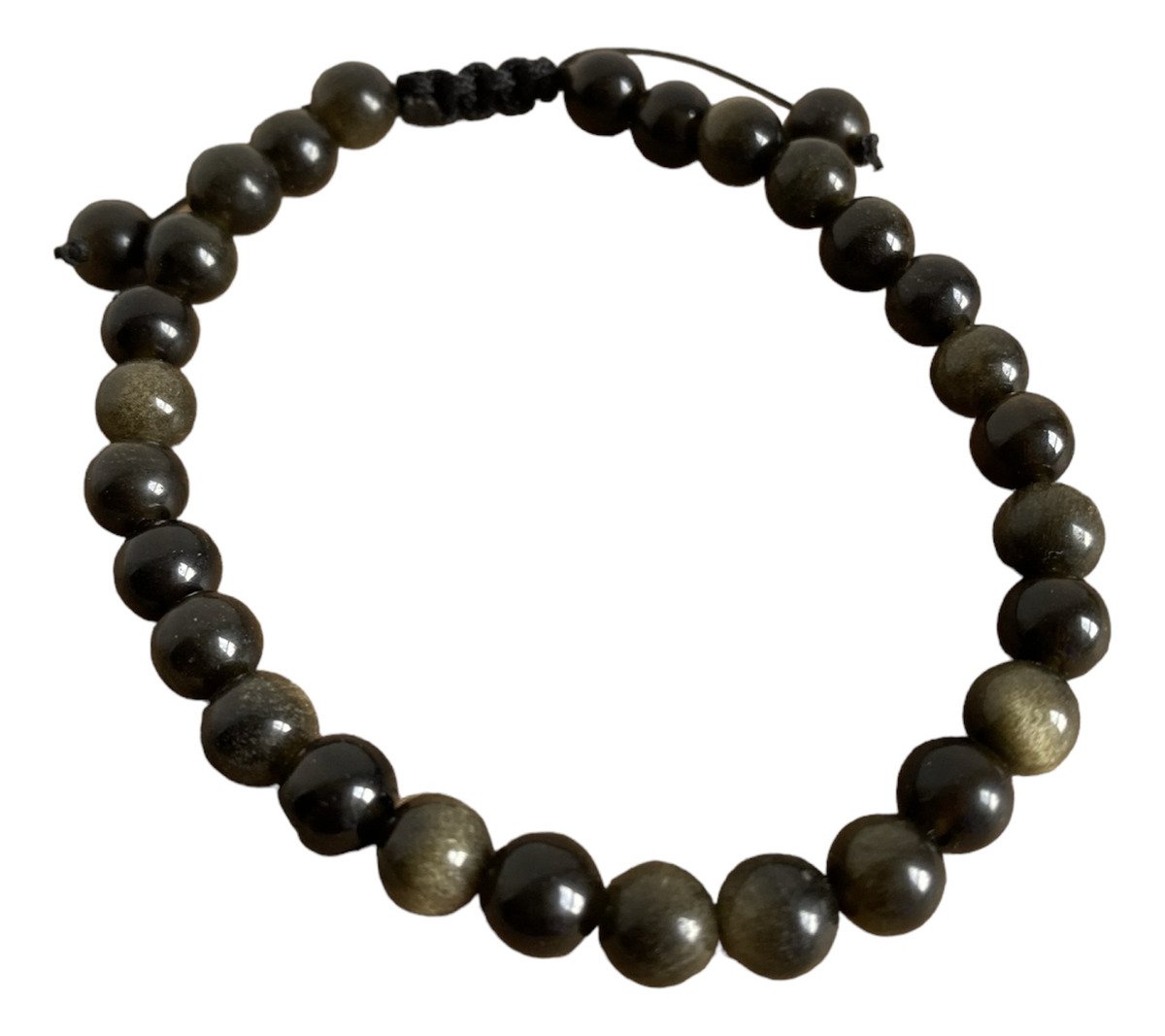 Pulsera De Obsidiana Dorada Autentica Ajustable 6mm