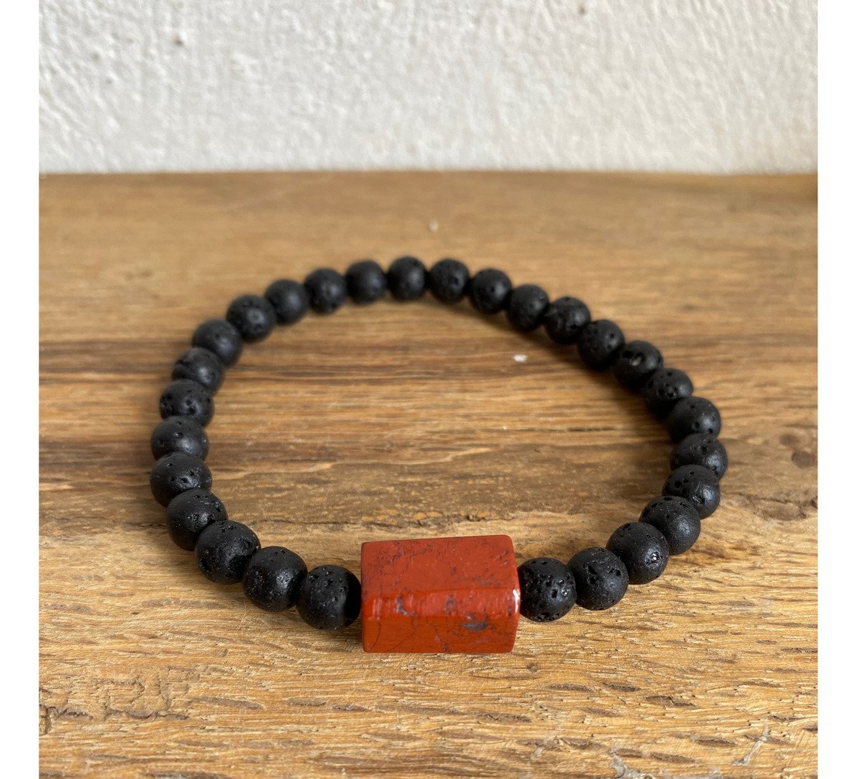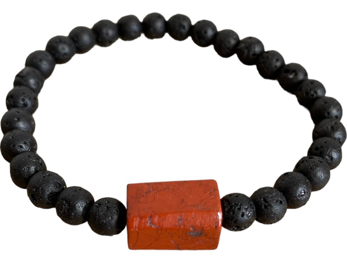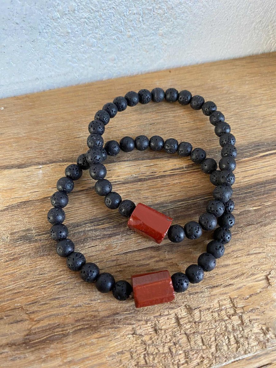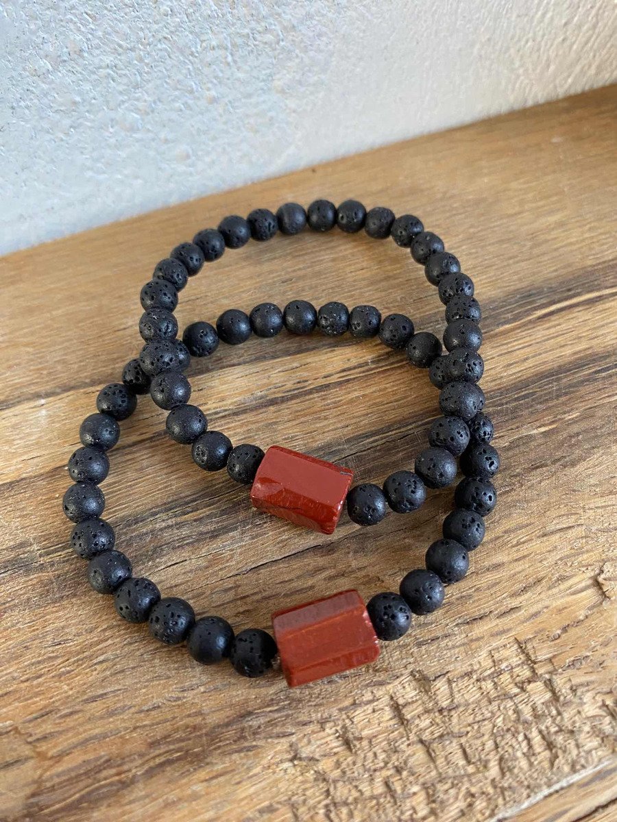 Pulsera De Piedra Volcánica Basalto Y Jaspe Rojo