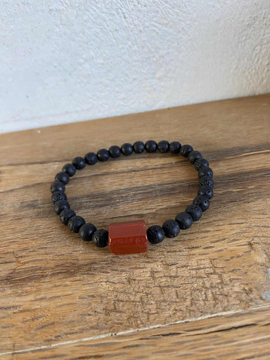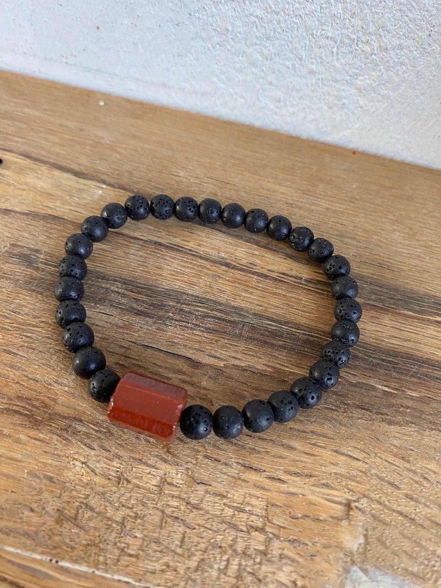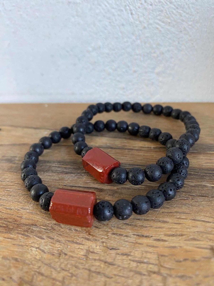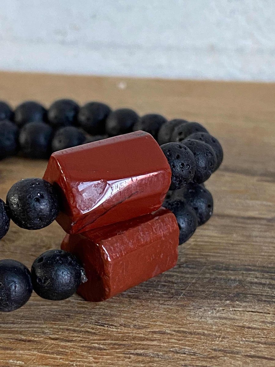 Pulsera De Piedra Volcánica Basalto Y Jaspe Rojo