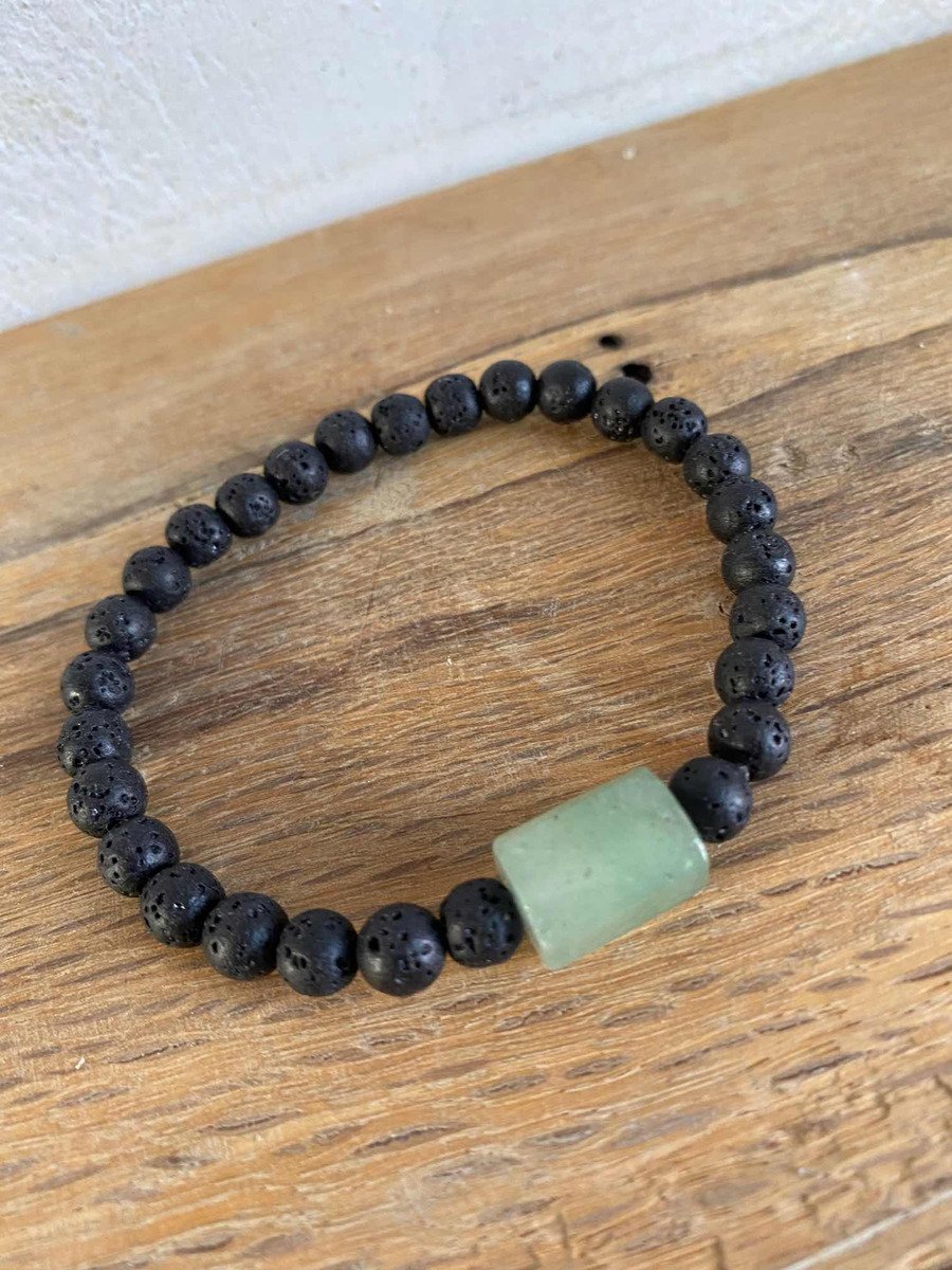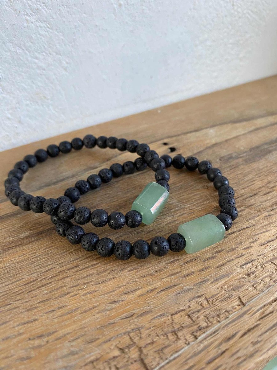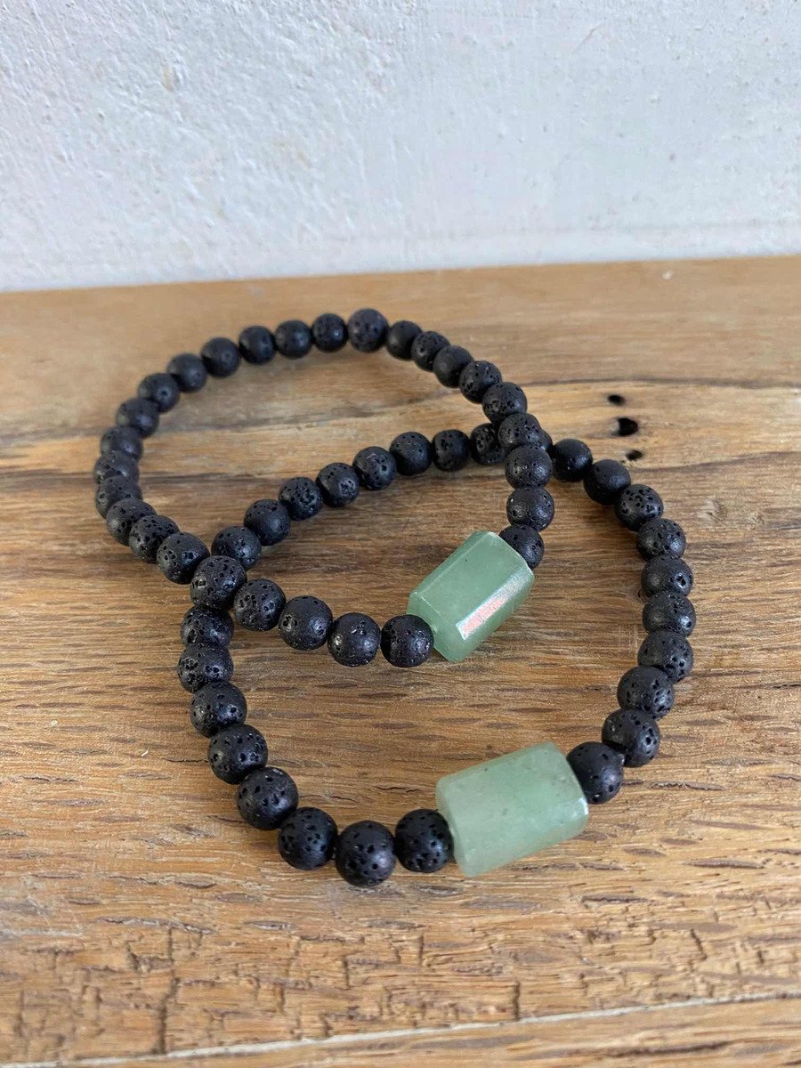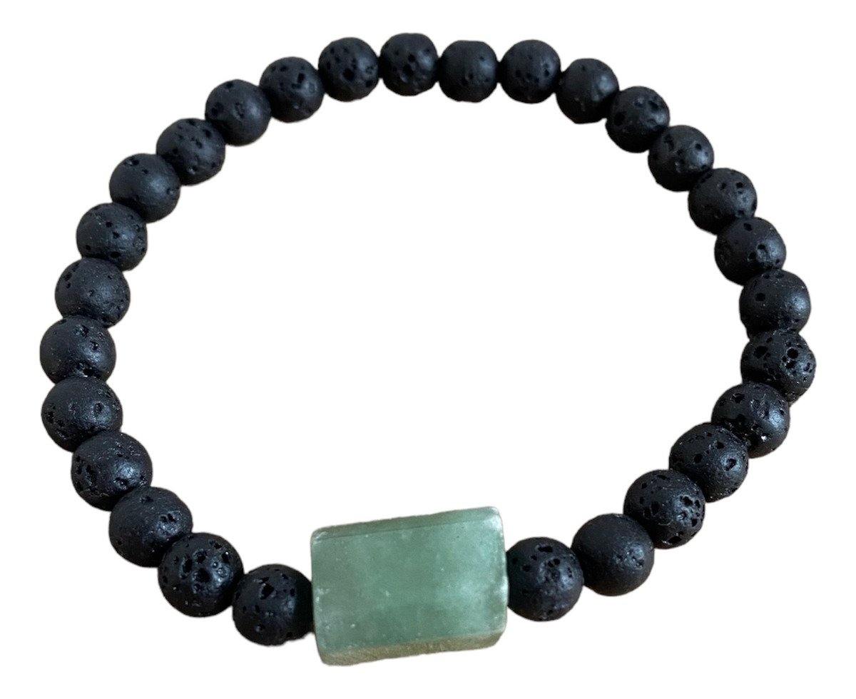 Pulsera De Piedra Volcánica Y Aventurina Verde