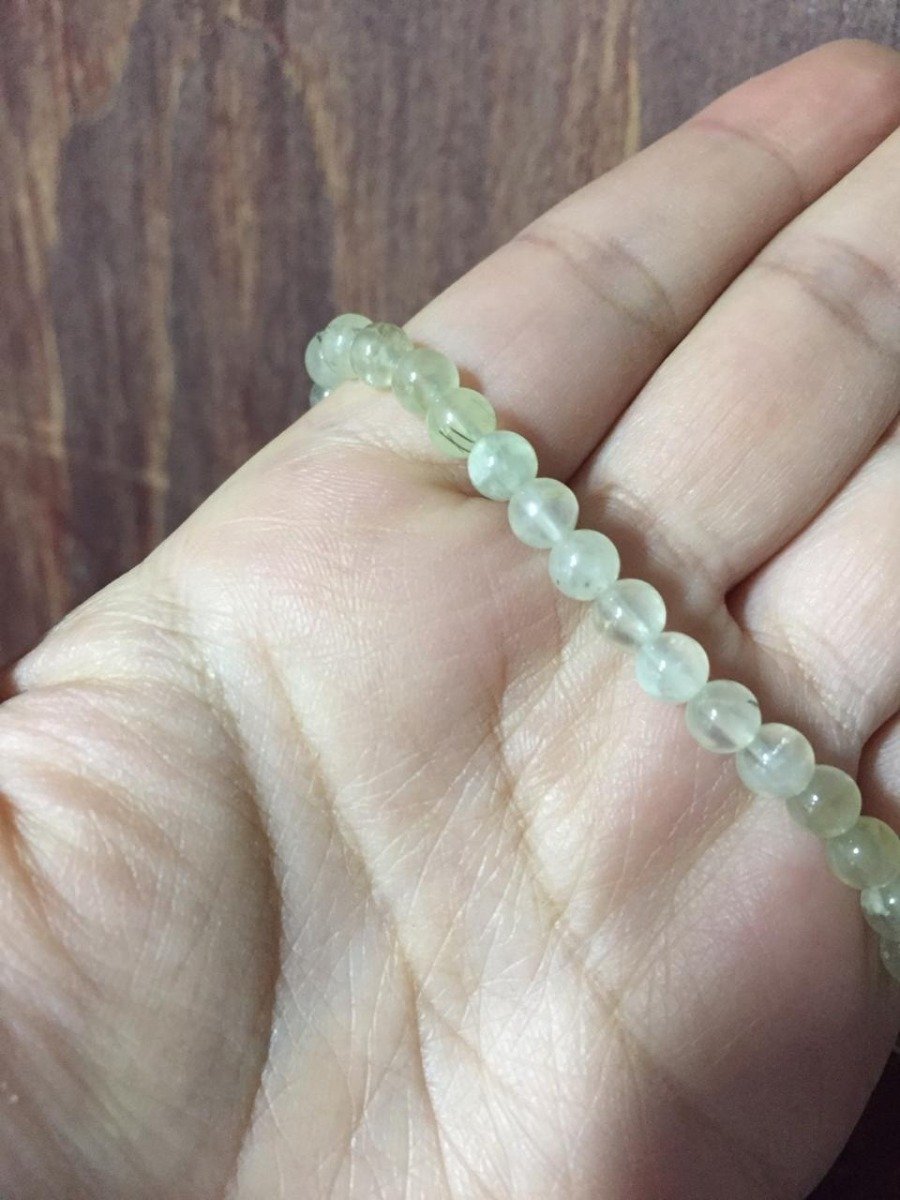 Pulsera De Prehnita Esferas 5 Mm Piedra Natural Reiki