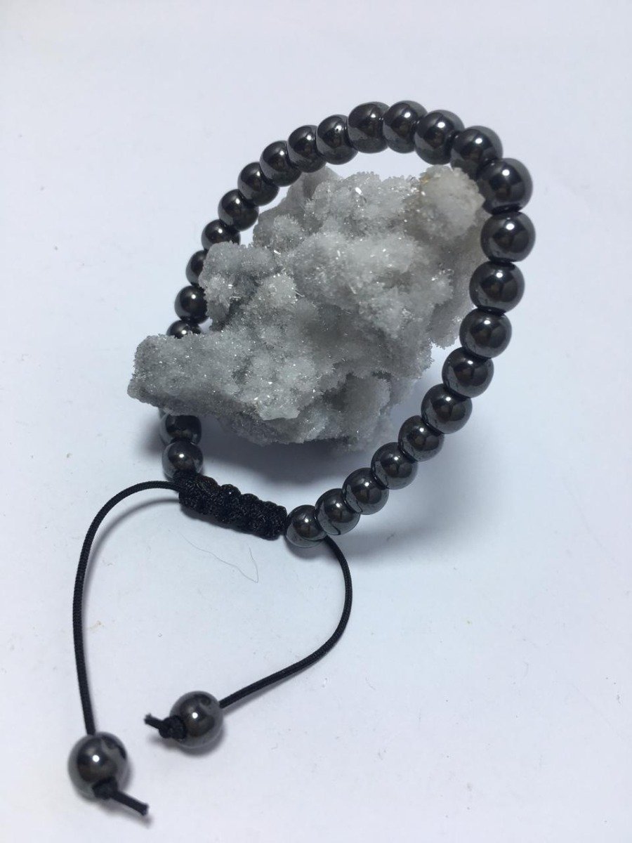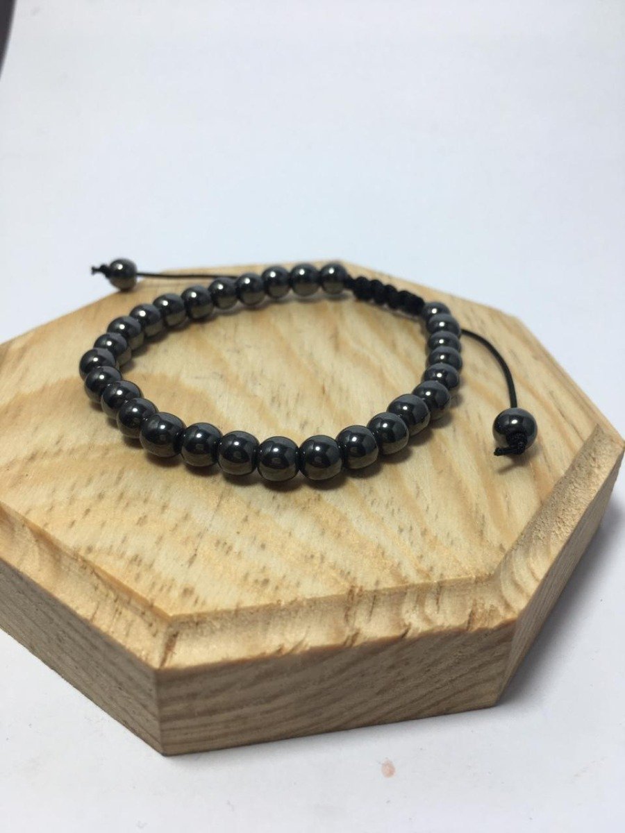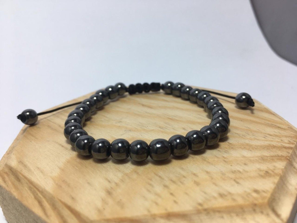 Pulsera Hematita Acerina Esfera 6mm Piedra Natural Ajustable