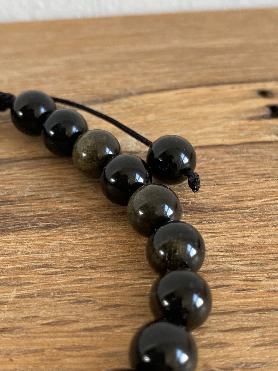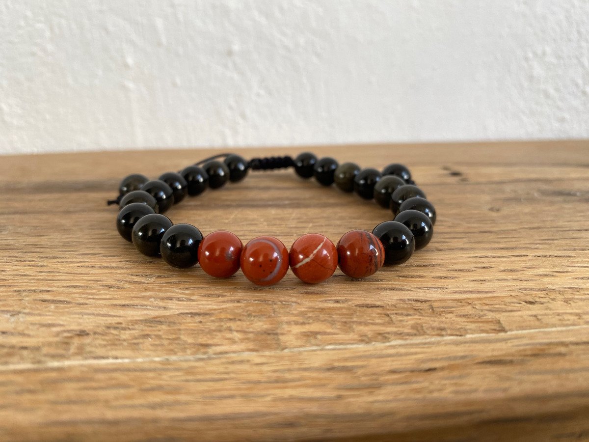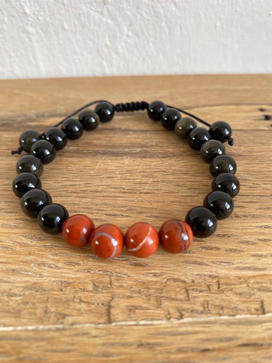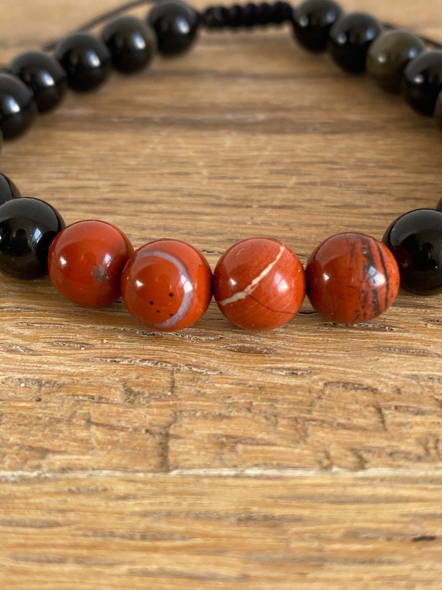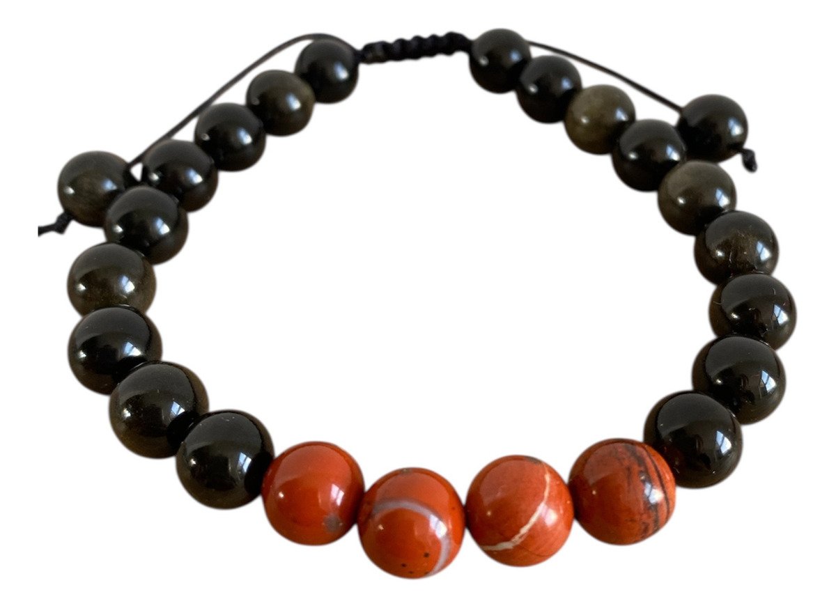 Pulsera Jaspe Rojo Y Obsidiana Piedra Natural 8mm Ajustable