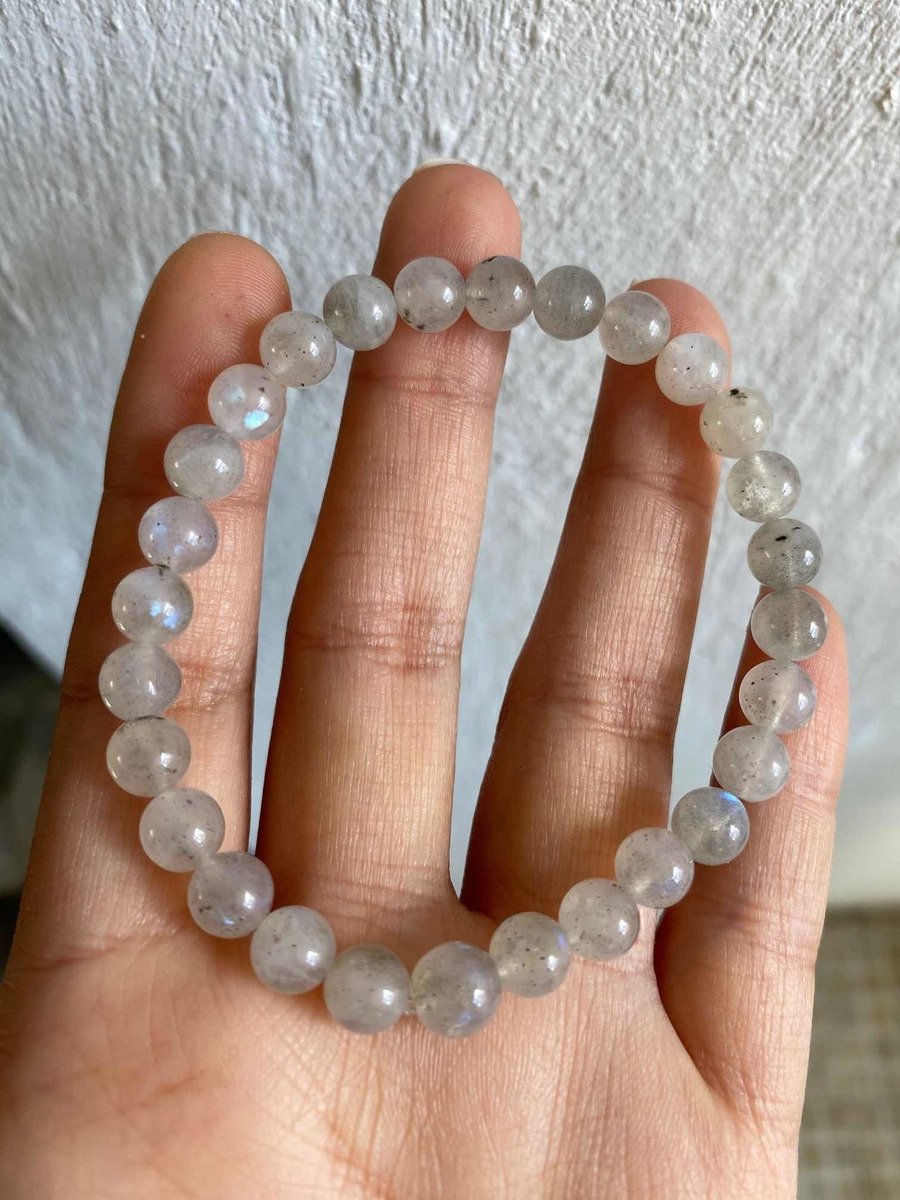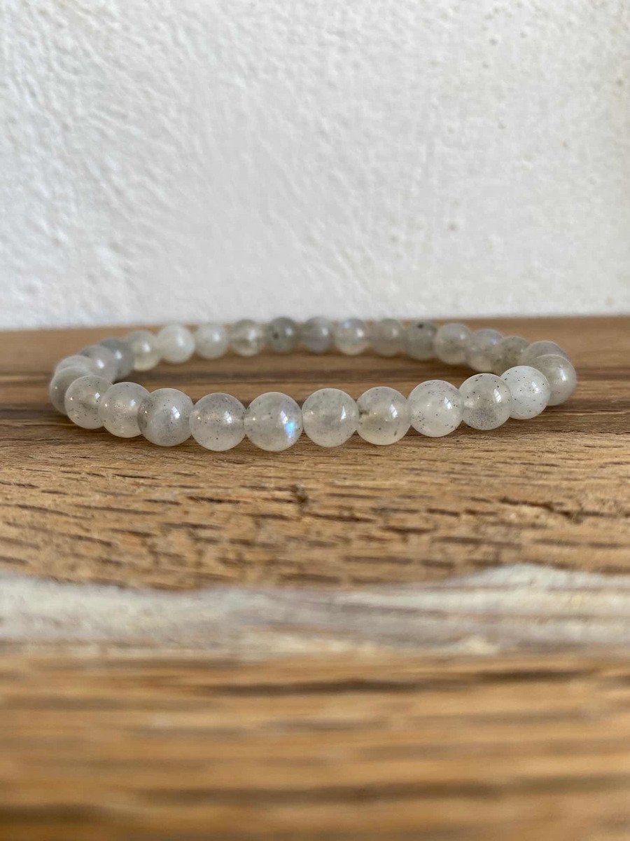 Es una piedra altamente mística y protectora, desvía fuerzas no deseadas del aura y forma una barrera ante las energías negativas. Puede llevarte a otro mundo o a otras vidas, ya que es una piedra muy esotérica que facilita la iniciación a los misterios. La labradorita alinea los cuerpos físico y etérico, estimula la intuición y los dones psíquicos. Psicológicamente disipa miedos e inseguridades. Fortalece la fe en el yo y la confianza en el universo. Calma la mente hiperactiva y energetiza la imaginación, aporta también contemplación e introspección. Ponla en el chacra corazón superior o sostenla o colócala donde sea apropiado.