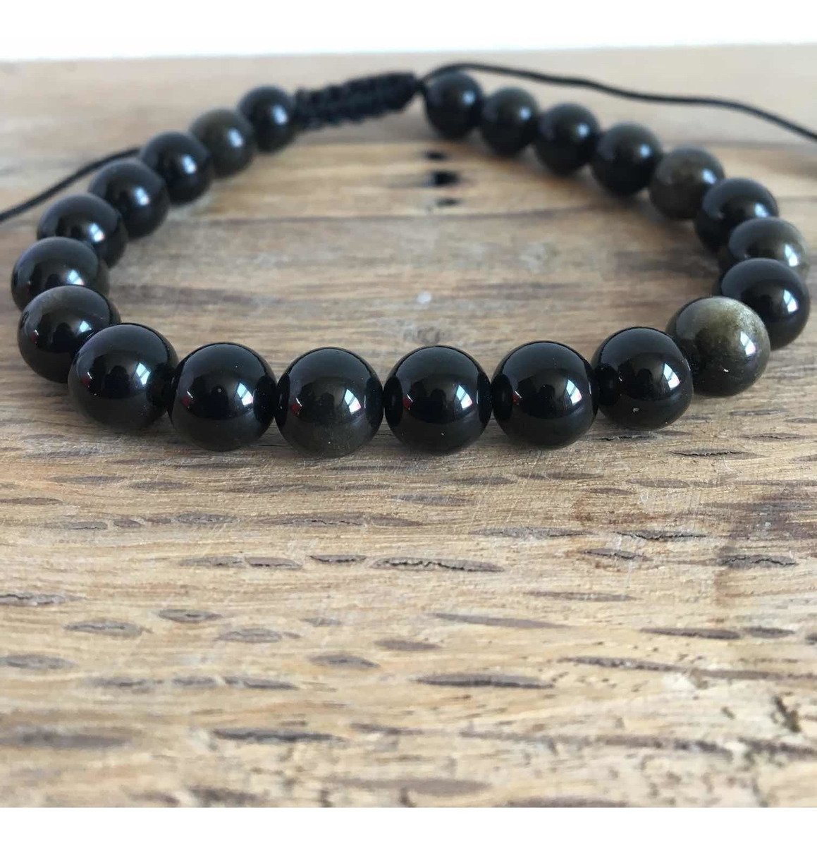 Pulsera Obsidiana Dorada Auténtica Piedra Natural 8mm