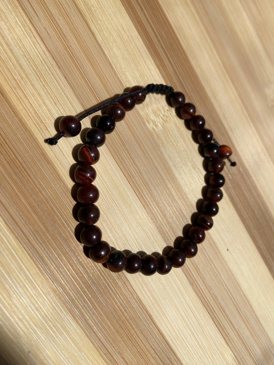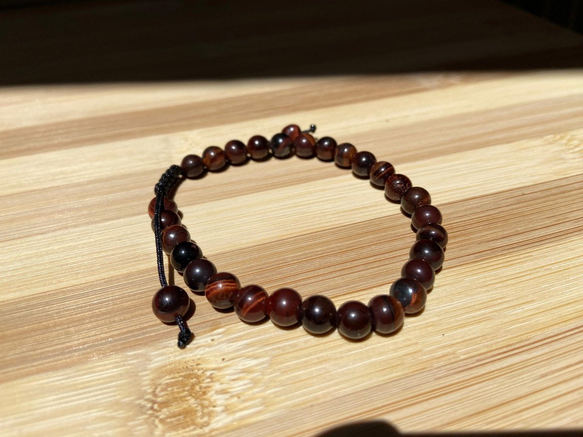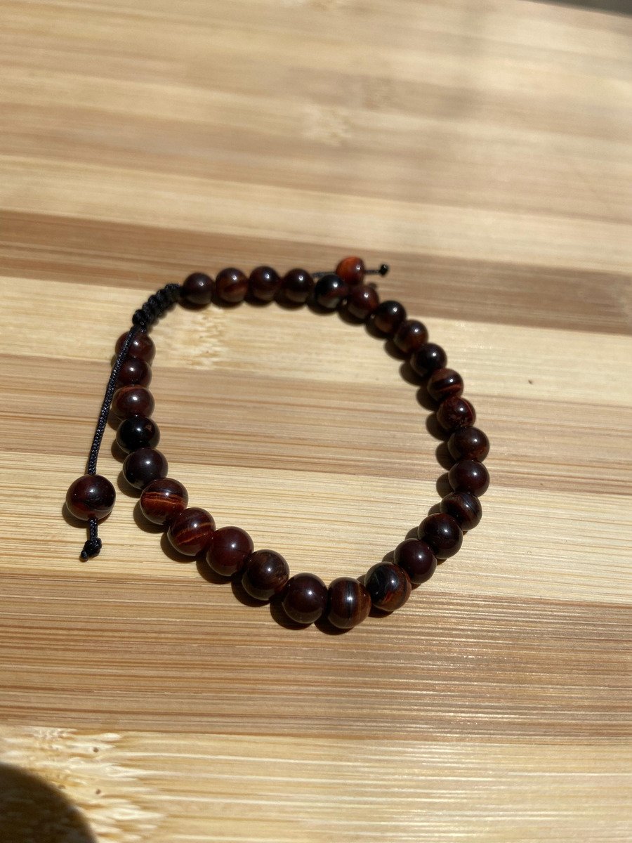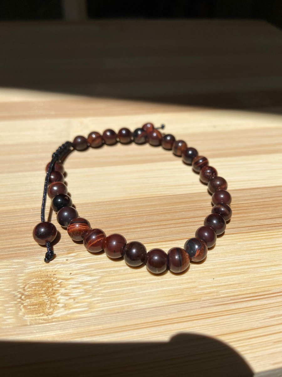 Pulsera Ojo De Tigre Rojo Ojo De Toro 6mm Hilo Ajustable