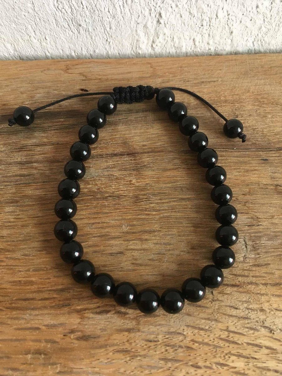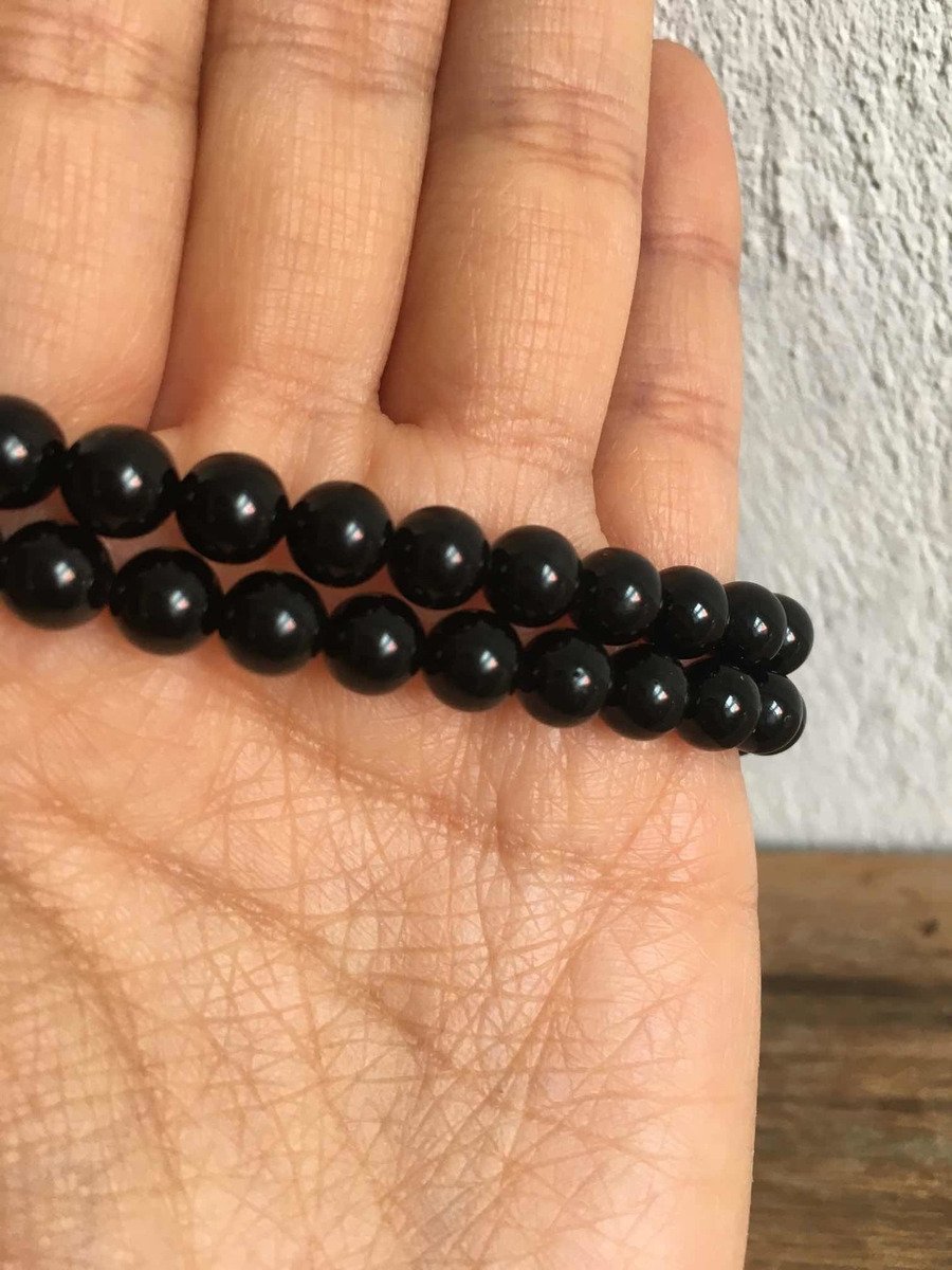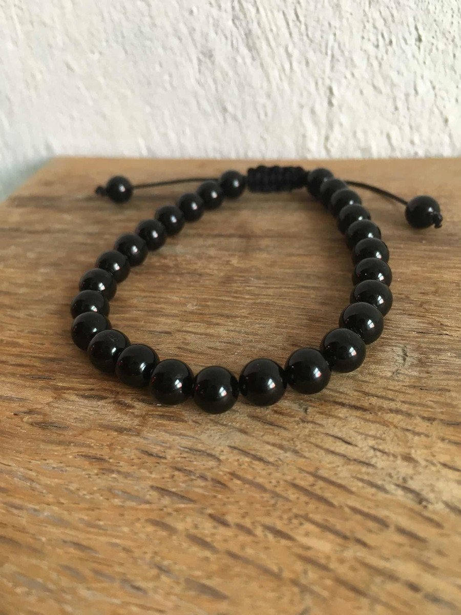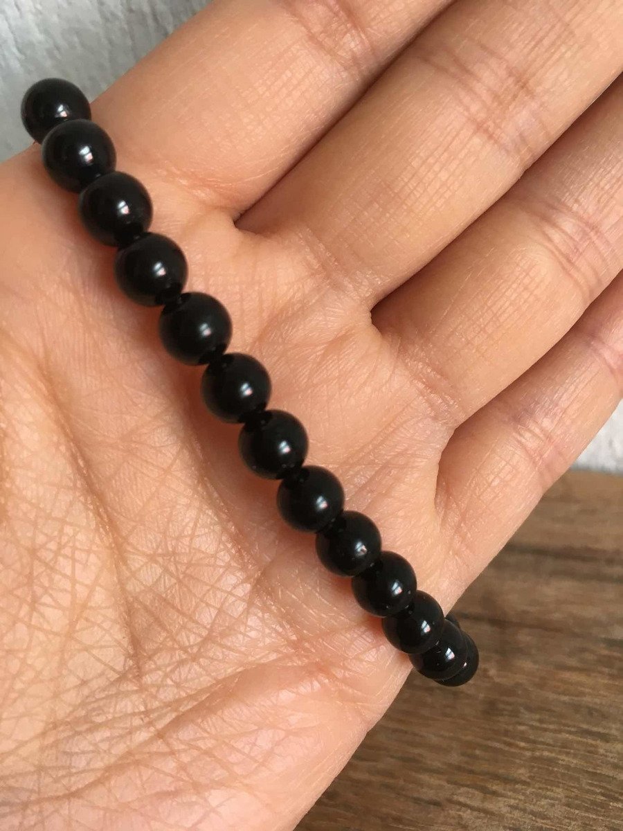 Pulsera Turmalina Negra 6 Mm Autentica Ajustable 28 Cuentas