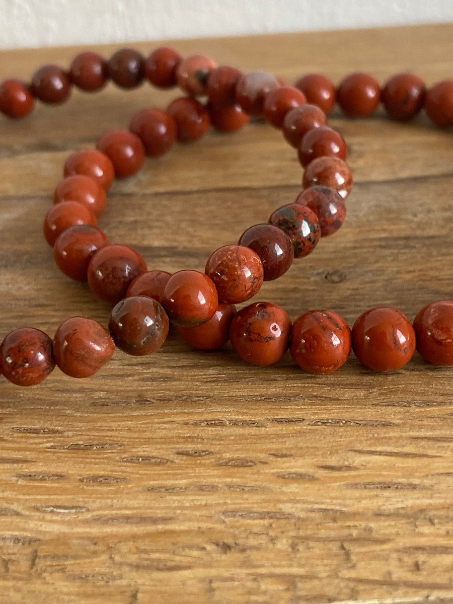 El jaspe rojo es una piedra asociada al 1º chakra, promueve el arraigo, la fuerza y la seguridad. Suele ser indicada para energizar el cuerpo y aportarle vitalidad. Se considera una piedra de limpieza y equilibrio. A nivel curativo se dice que ayuda a desintoxicar el sistema circulatorio.