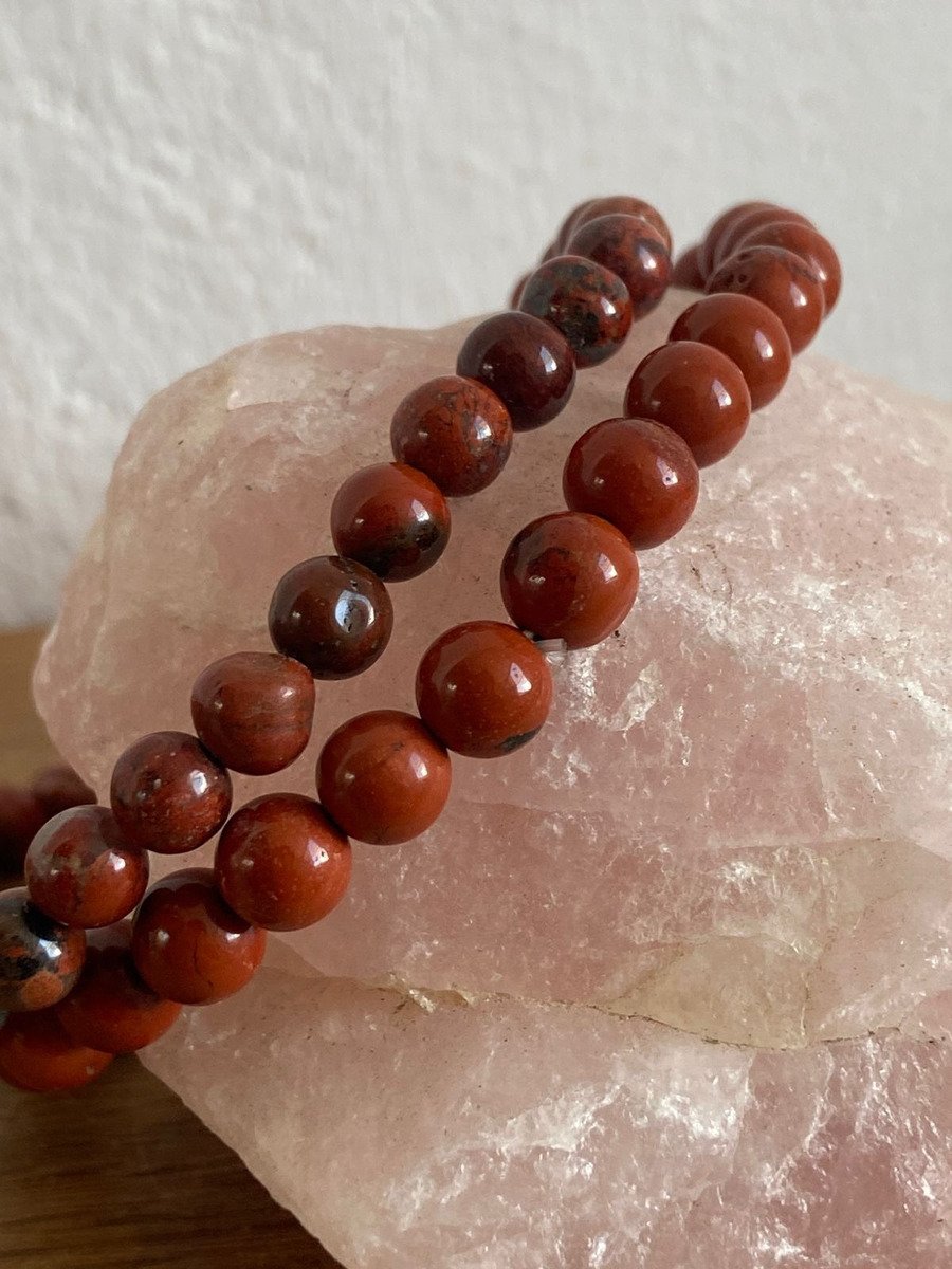 Pulseras Jaspe Rojo Y Sardo 6 Mm Duo Amuleto Contra Envidia
