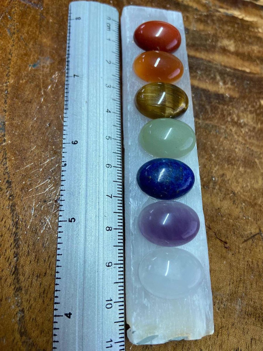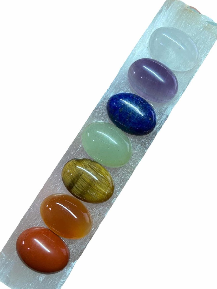 Cada chakra está representado por una piedra en forma de cabujón: